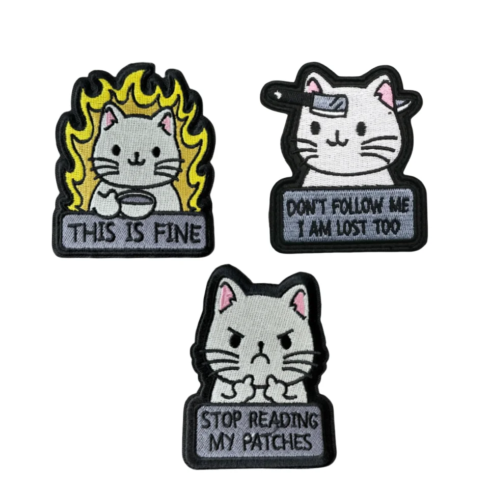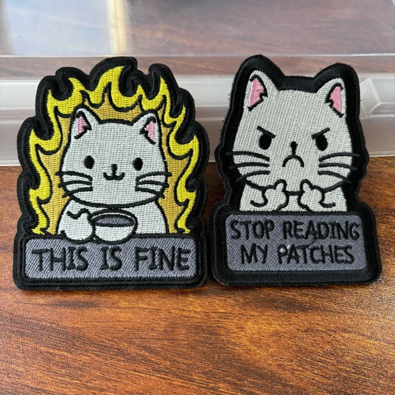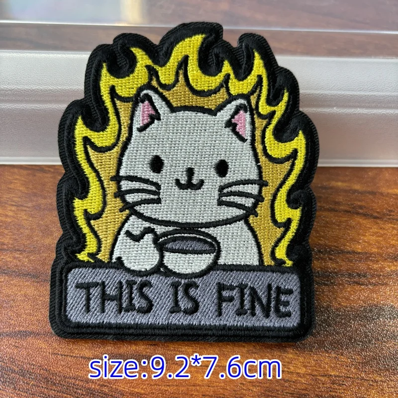 Parches de bordado de gato táctico de dibujos animados Parche de gancho y bucle "ESTO ESTÁ BIEN" Insignia de moral de gato Pegatinas de mochila táctica de gatito