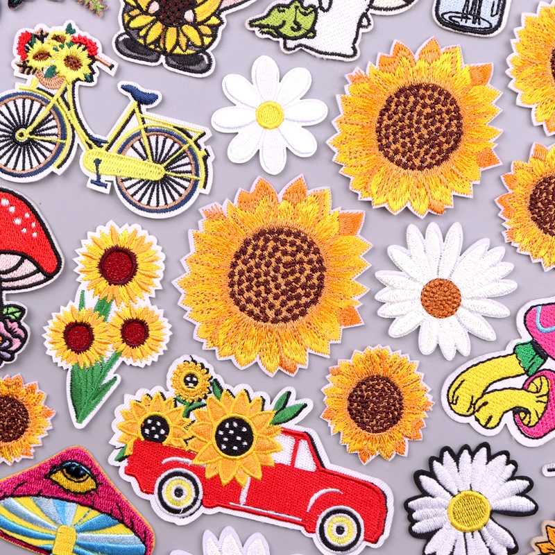 Parches de bordado de girasol para ropa parches termoadhesivos para ropa Flor de dibujos animados costura parche Fusible pegatinas insignias