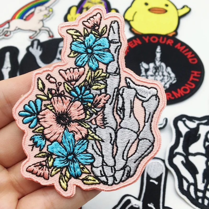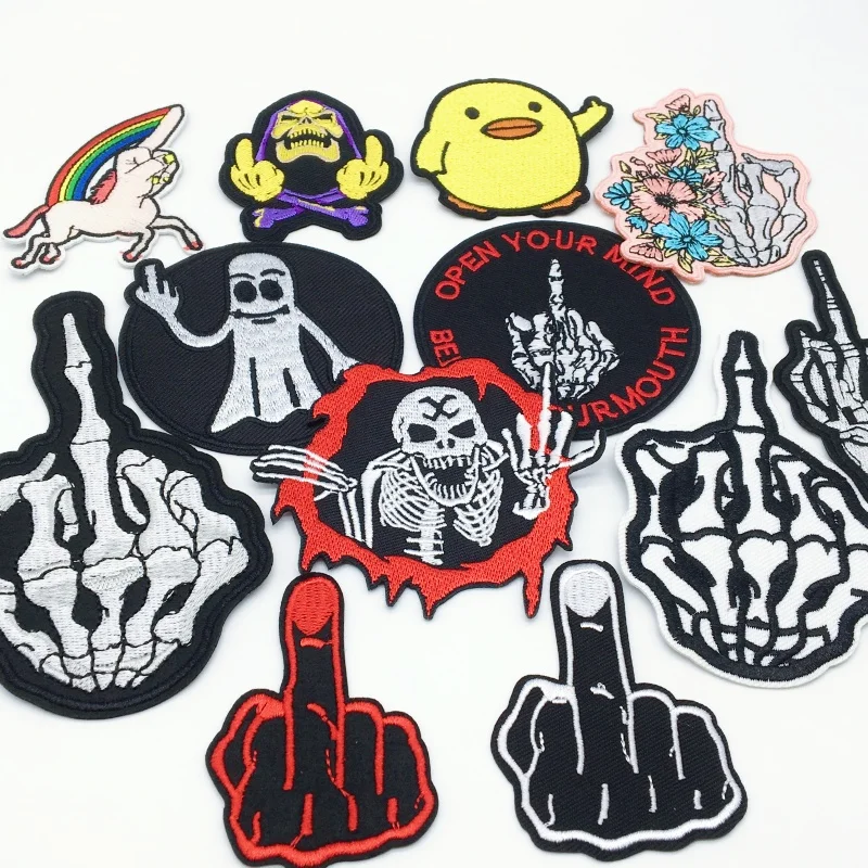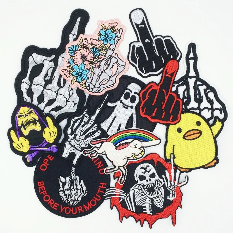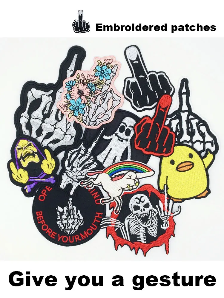 Parches bordados "Give you a gesture", apliques para ropa Punk DIY, parches para planchar mochila, ropa, chaqueta, Jeans, pegatinas