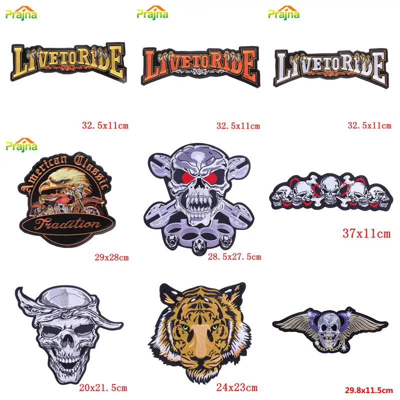 Live To Ride Parches bordados grandes para planchar Parches tácticos grandes en ropa Parches térmicos para motociclistas para ropa