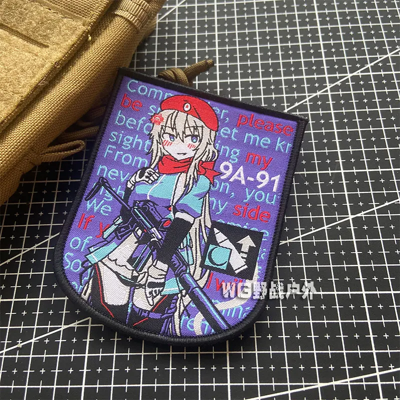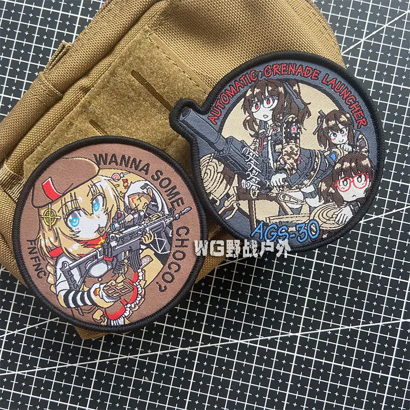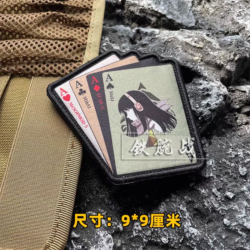 Parches bordados de guerrero de pistola de primera línea para niñas, insignia táctica de Anime de dos dimensiones del equipo para decoración de mochila de ropa