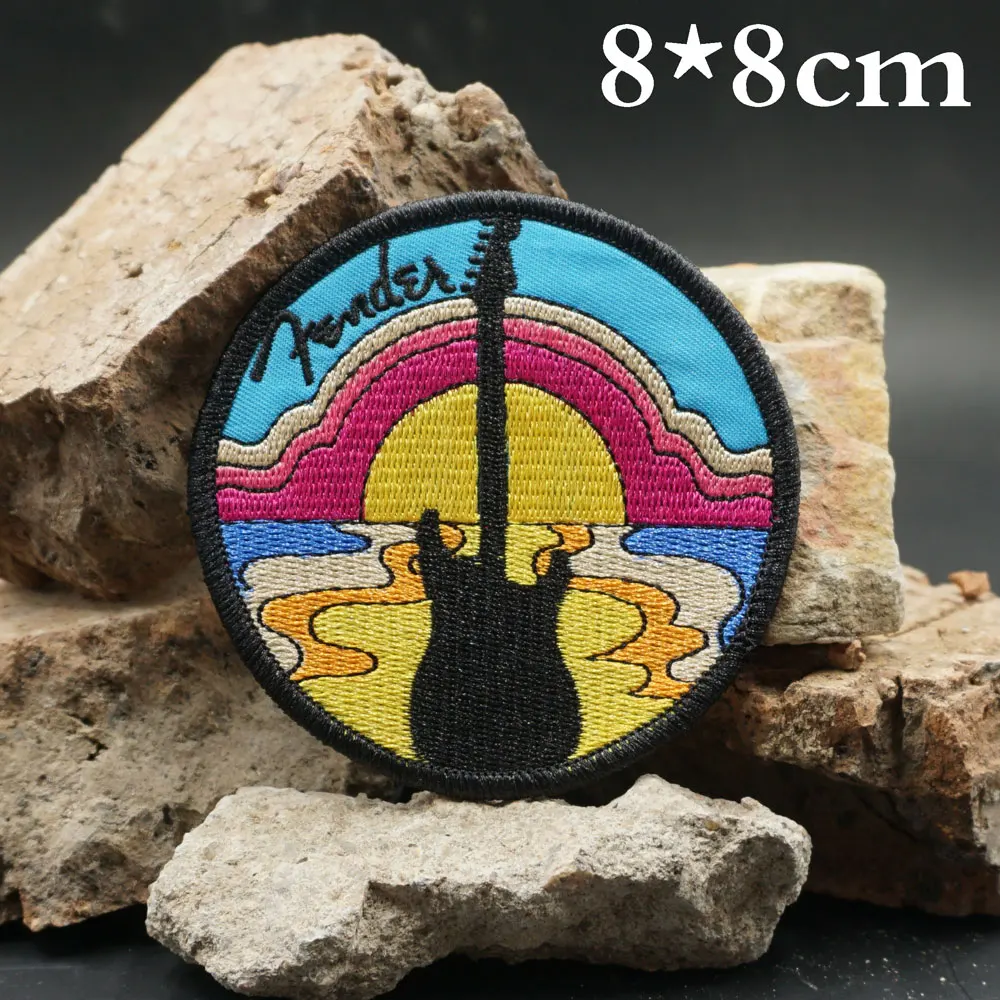 Parches bordados de guitarra de amor, apliques de etiqueta de costura, banda de motorista punk, insignias de ropa de Rock con respaldo de gancho