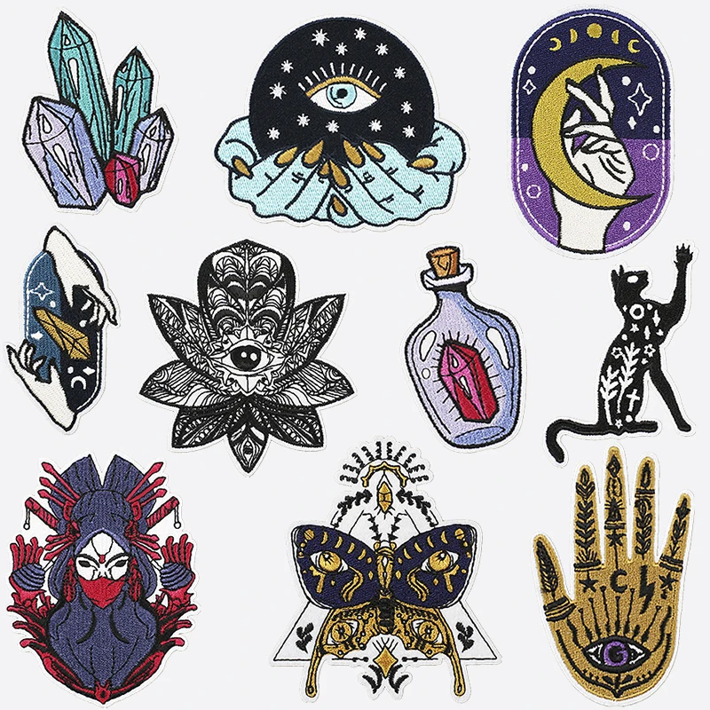 Parches bordados hechos a mano para ropa, insignias de Brujas, apliques bordados de ojo de diablo para chaqueta