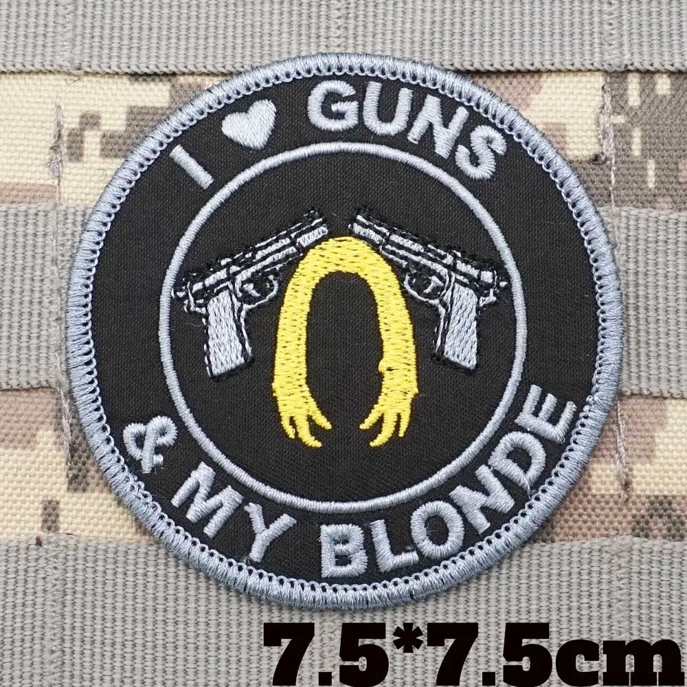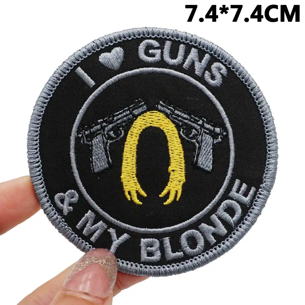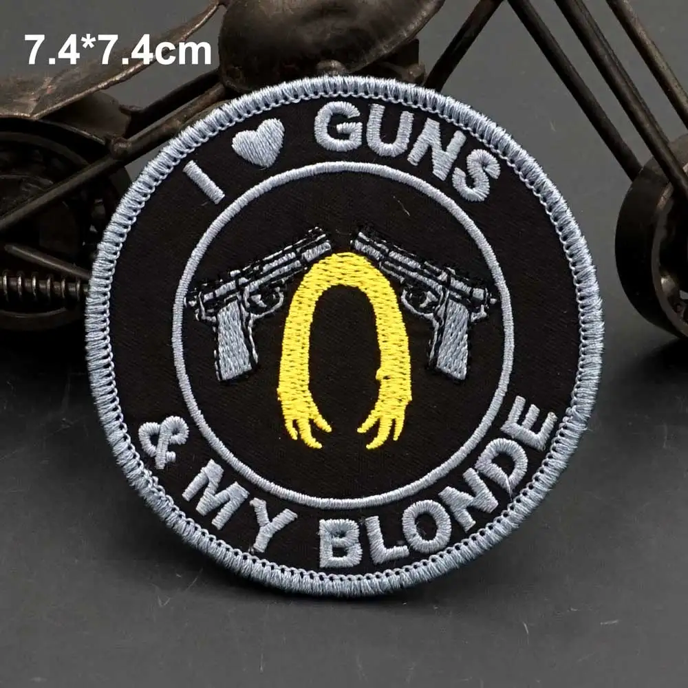 Parches bordados I LOVE GUNS AND MY BLONDE, apliques, etiqueta de costura, banda de motociclista punk, insignias para ropa de Rock con respaldo de gancho