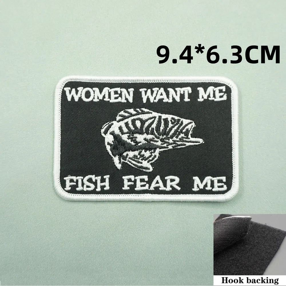 Parches bordados con insignia de la serie Fish para ropa, con respaldo de gancho
