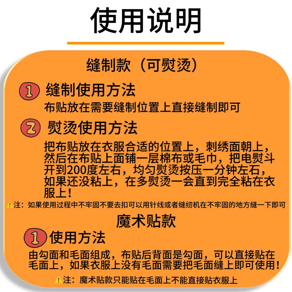 Tamaño y estilo: Hay múltiples especificaciones disponibles (como 6,3 × 7 cm para el estilo tigre, 8 × 7,5 cm para el estilo de insignia, etc.), y se admiten métodos de costura y fijación con velcro;
