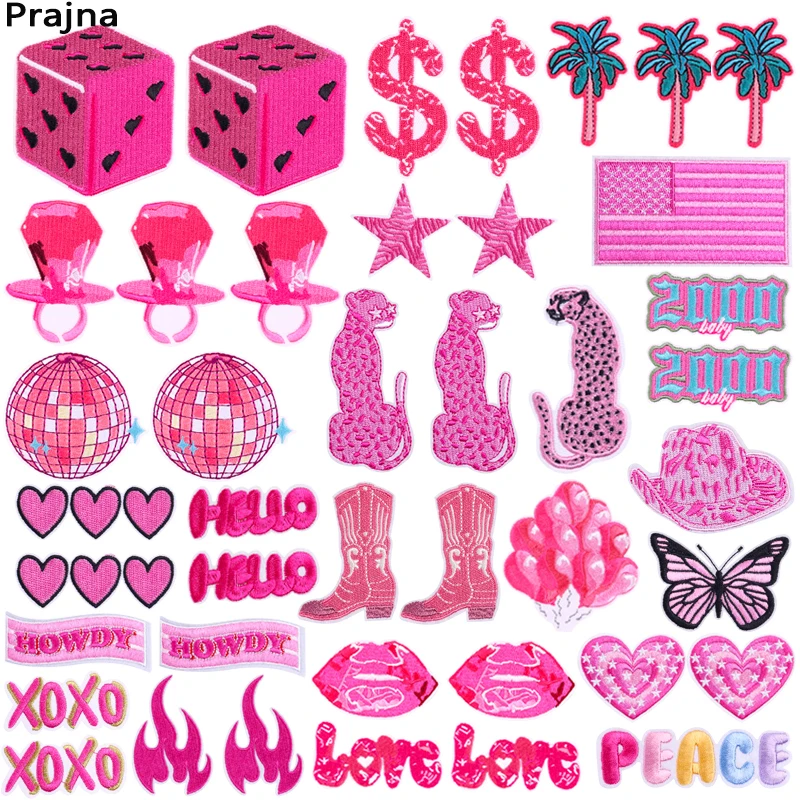 Parches bordados de la serie rosa de 5 piezas para ropa, parches de dibujos animados para planchar en la ropa, Jeans, sombrero, mochila, zapatos, parche Fusible