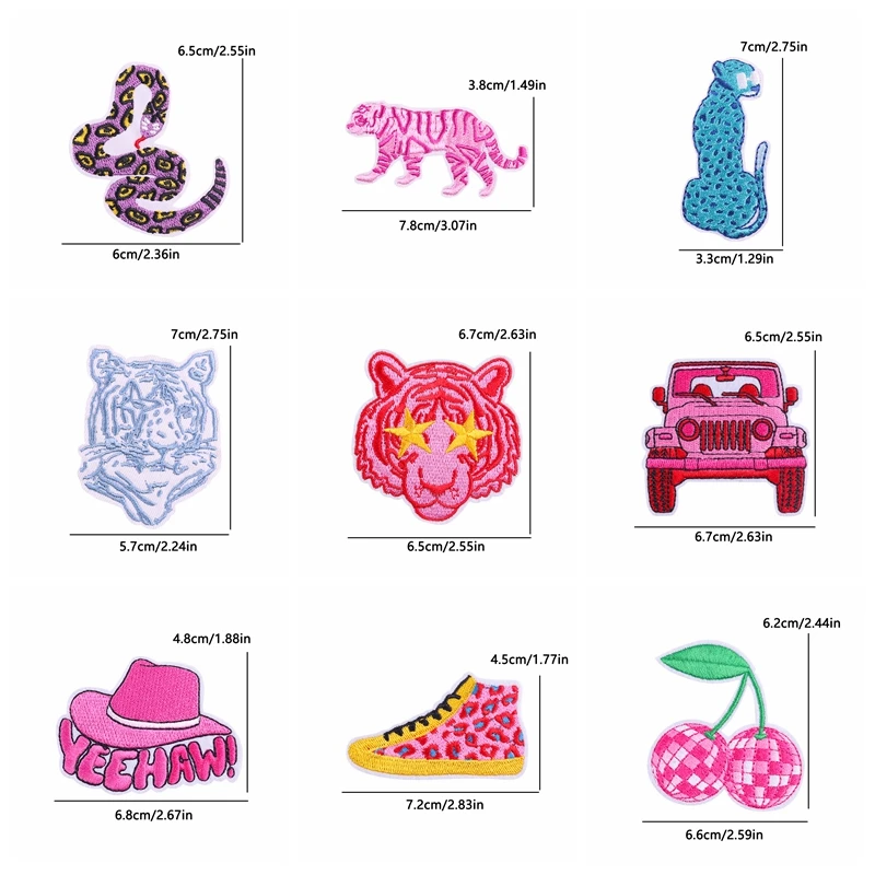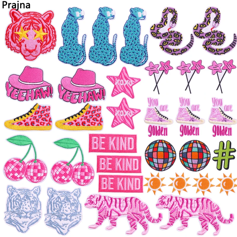 Parches bordados de la serie rosa de dibujos animados para piezas, parches de leopardo, serpiente, zapatos, parches de planchado para ropa, mochila, insignia de costura, 10 Uds.