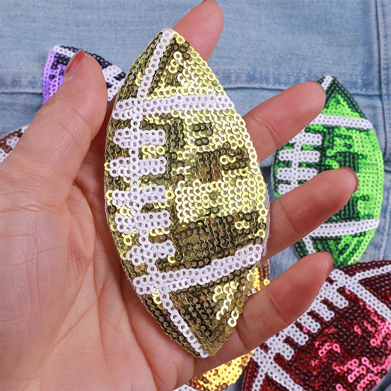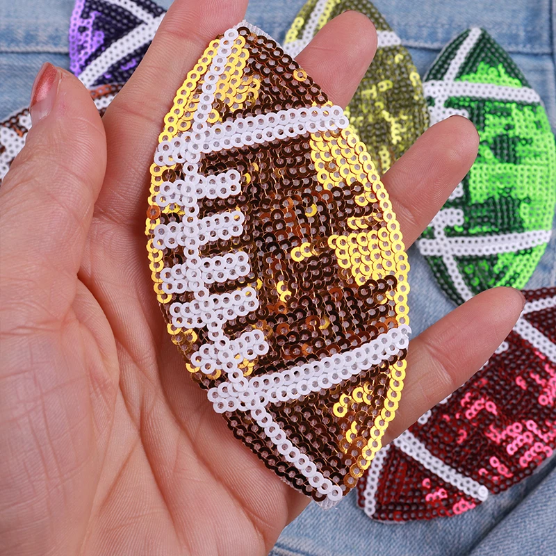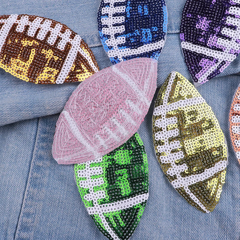 Parches bordados de lentejuelas de fútbol para ropa, parche de lentejuelas DIY, parches de hierro para ropa, sombreros, chaquetas, coser decorar, 1/7 Uds.