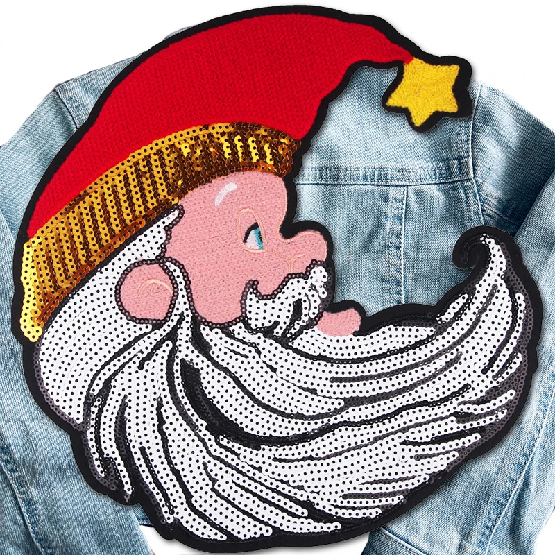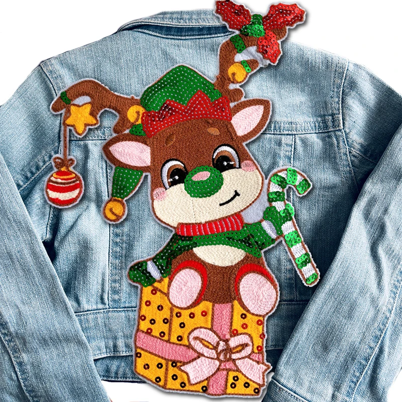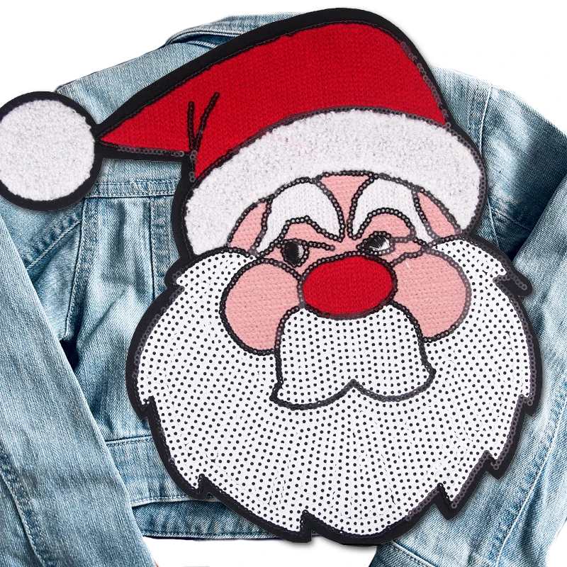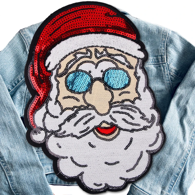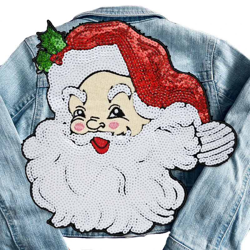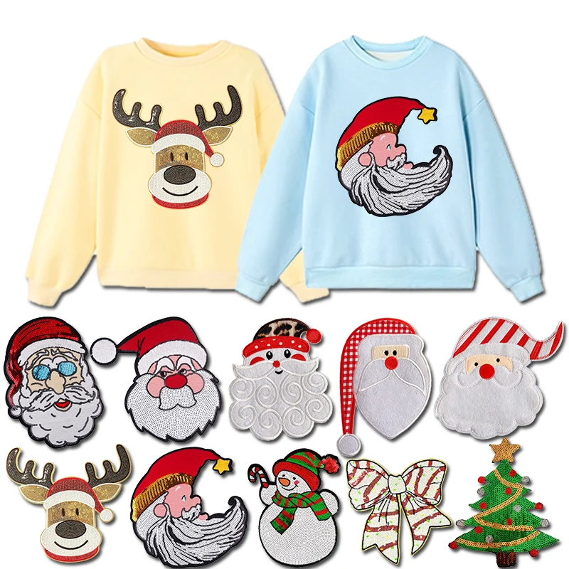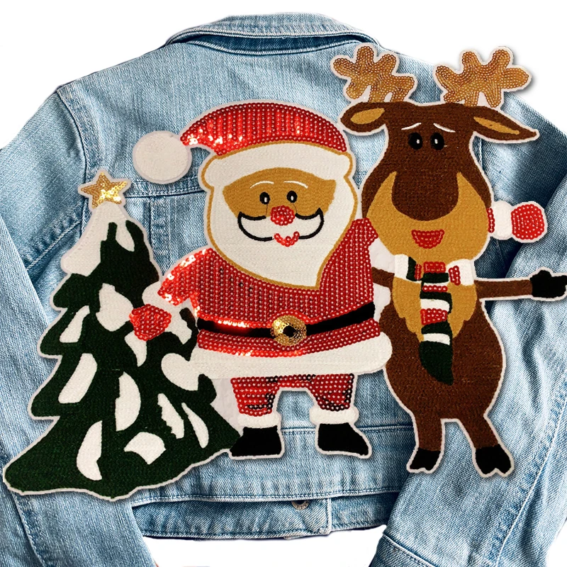 Large Sequins Embroidery Patches Santa Claus Tree Iron On Patches For Clothing DIY Snowman Deer Patch Christmas Decorate Patch