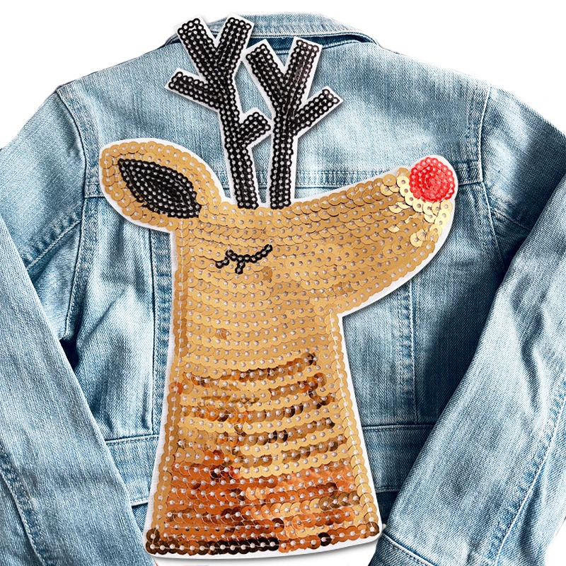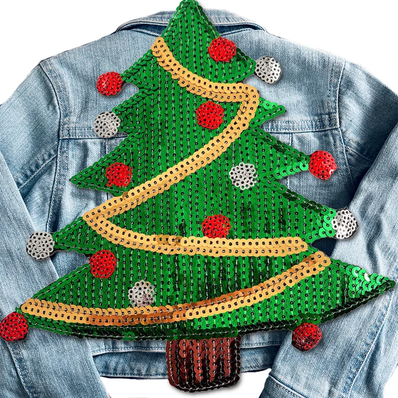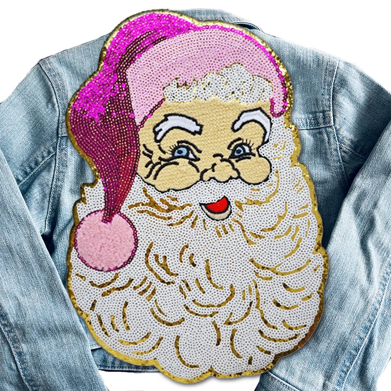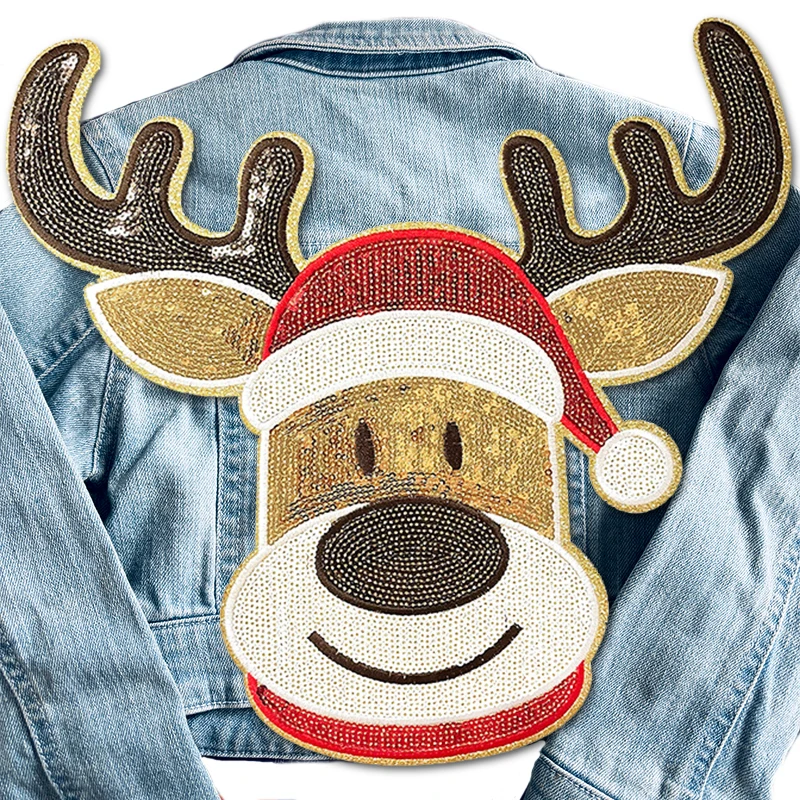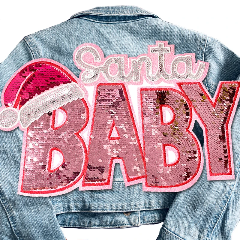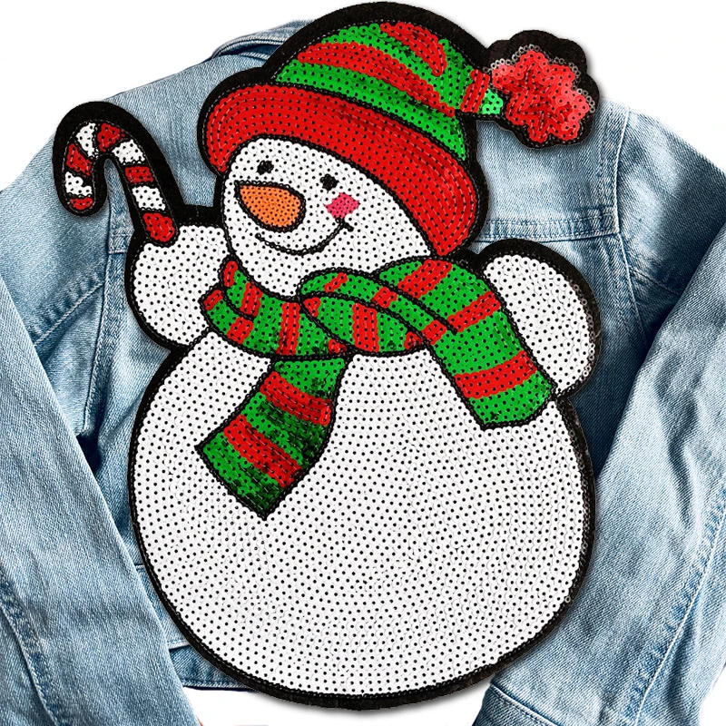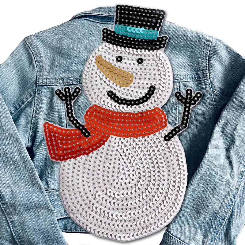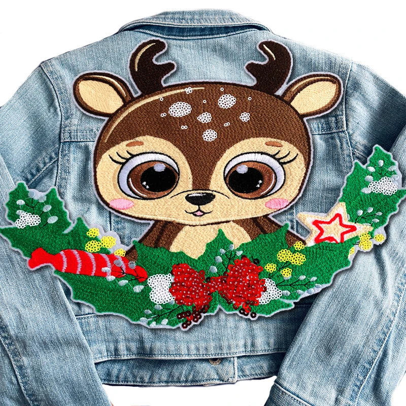 Large Sequins Embroidery Patches Santa Claus Tree Iron On Patches For Clothing DIY Snowman Deer Patch Christmas Decorate Patch