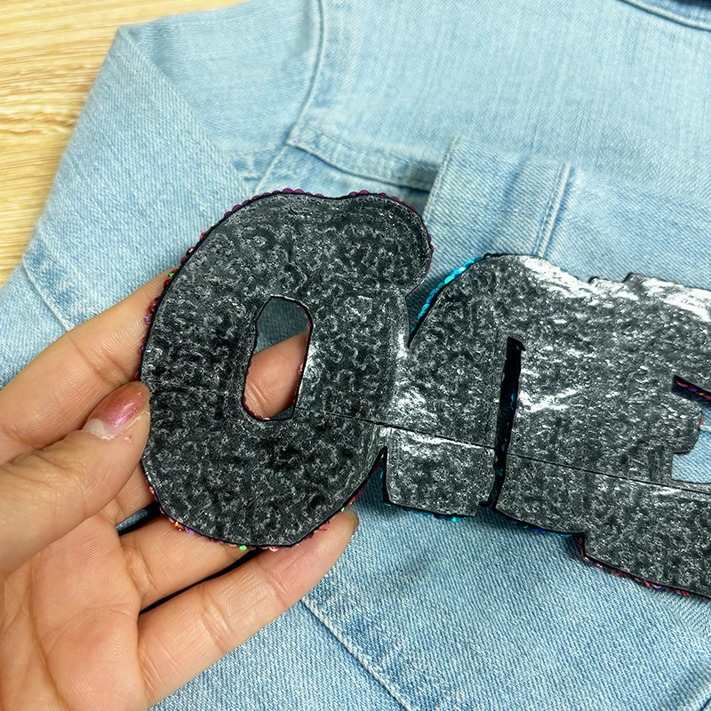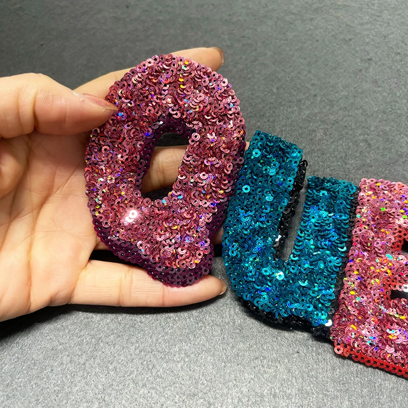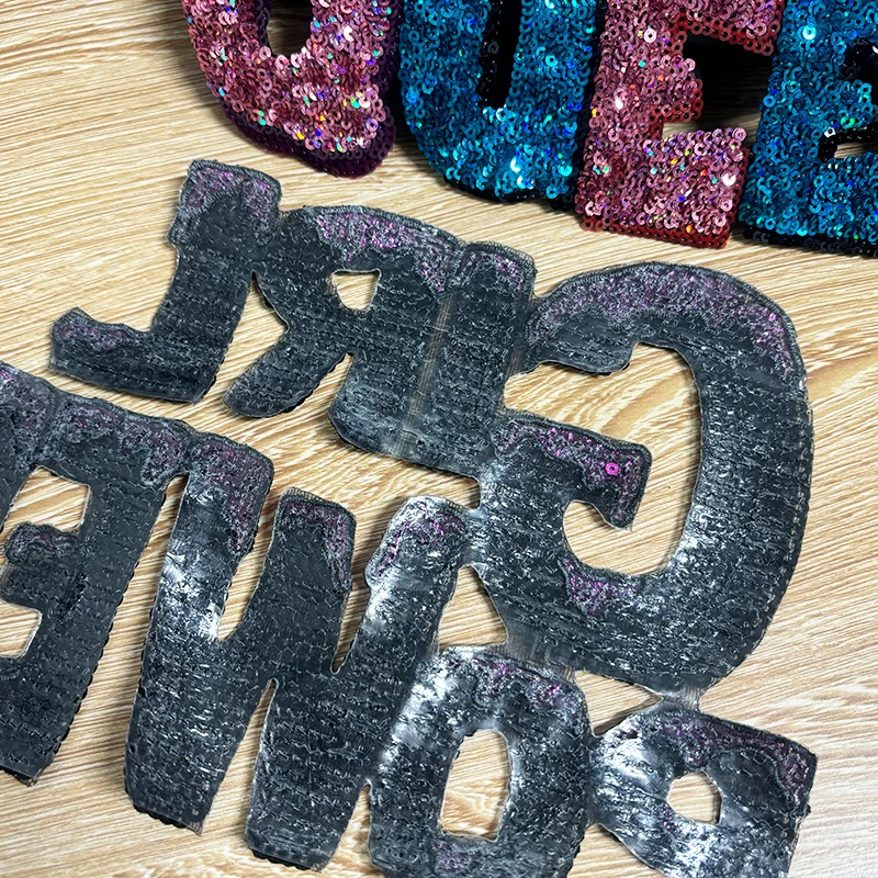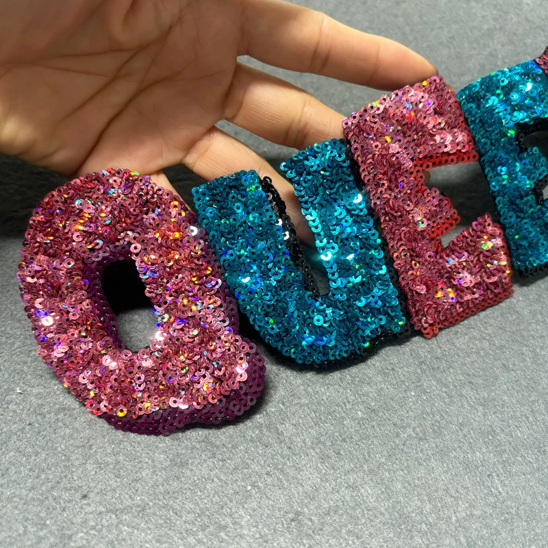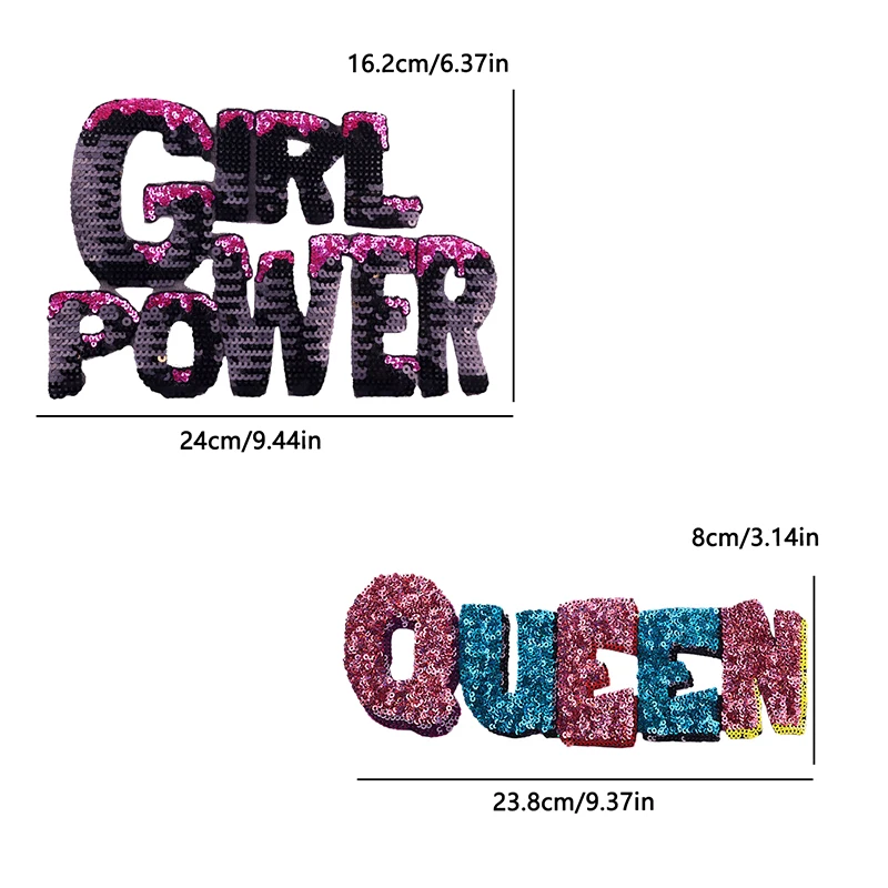 Parches bordados de lentejuelas con letras en inglés de Reina, parches para planchar, parches de lentejuelas de dibujos animados DIY, chaquetas, pantalones vaqueros, sombreros, pegatina decorativa para coser