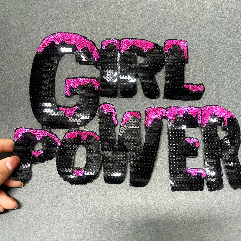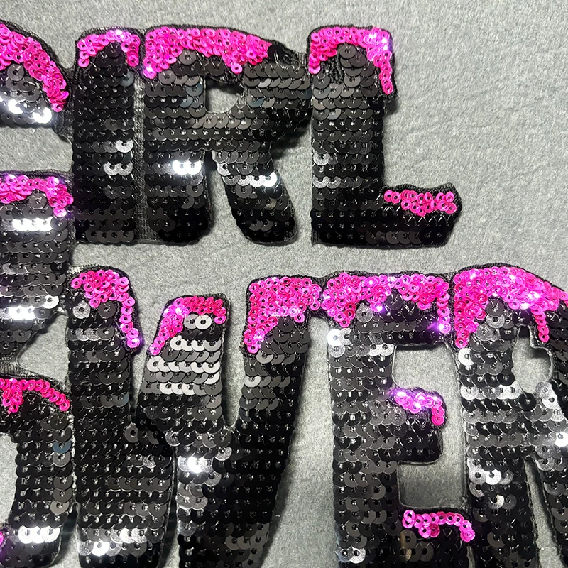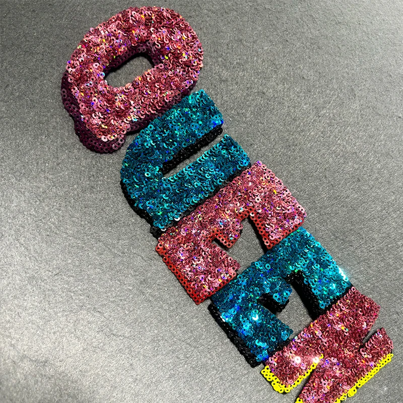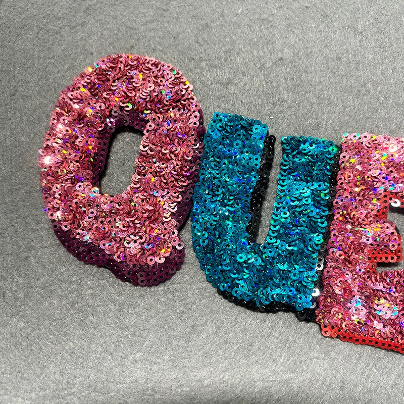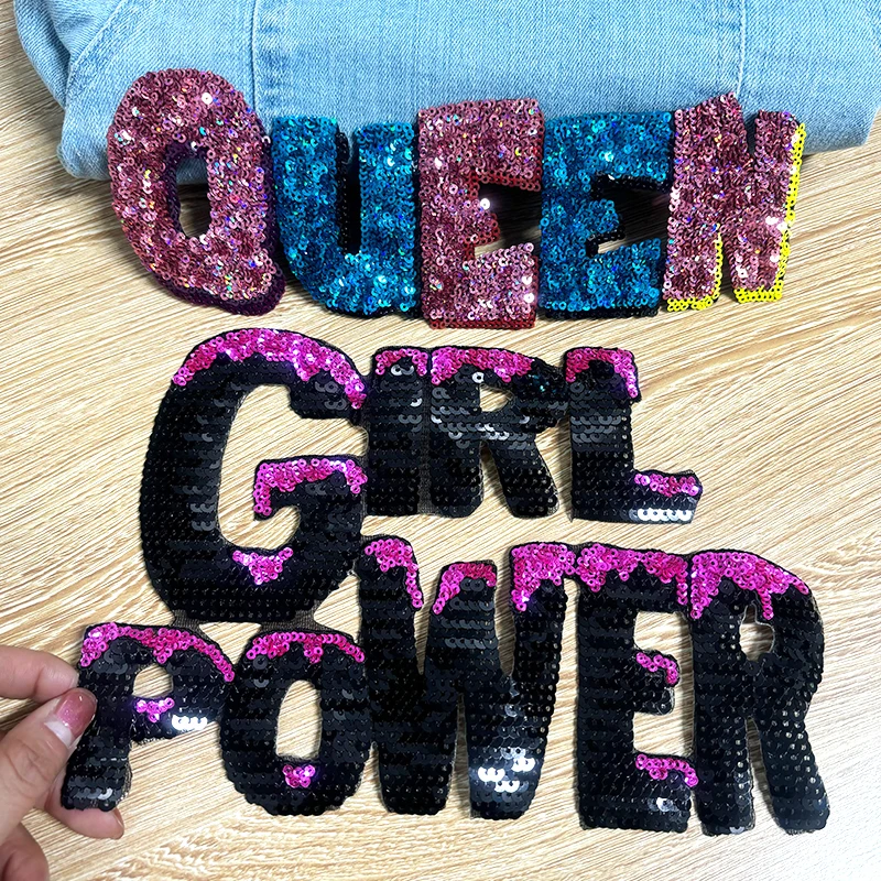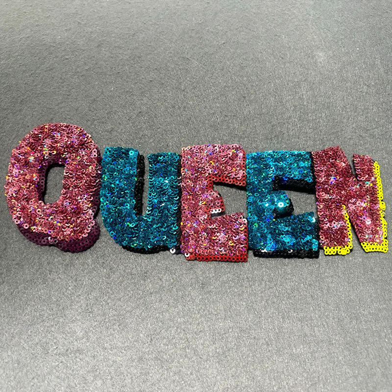 Remendos bordados de lentejuelas con letras inglesas de la Reina, parches de hierro para planchar, parches de lentejuelas de dibujos animados DIY, chaquetas, vaqueros, sombreros, coser, pegatina decorativa