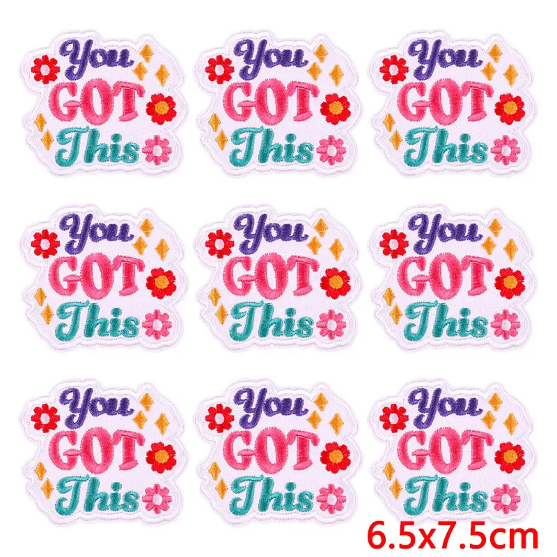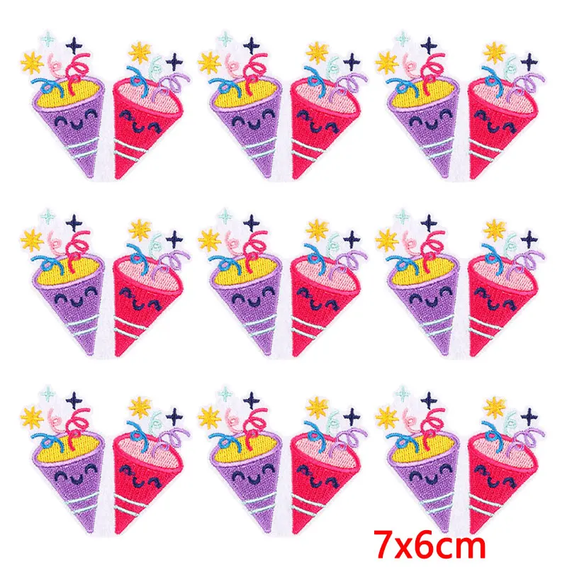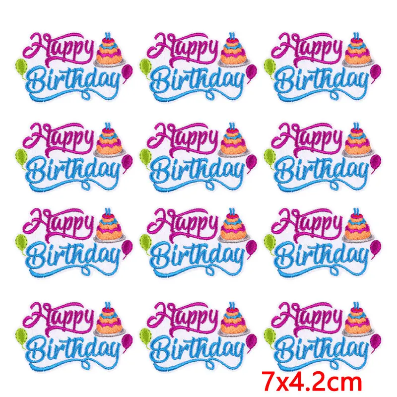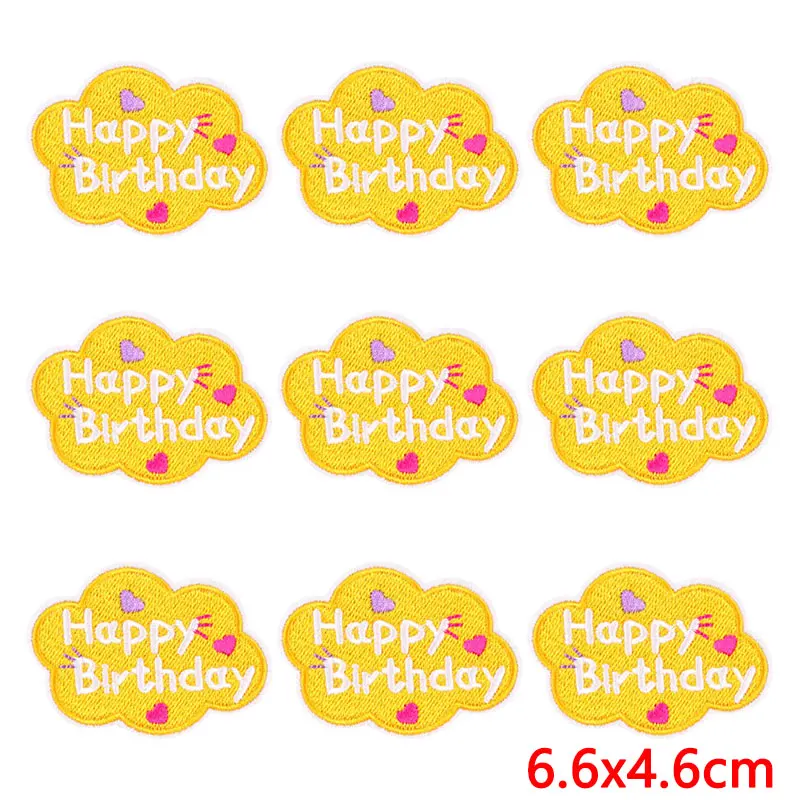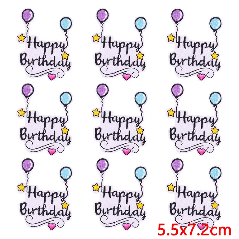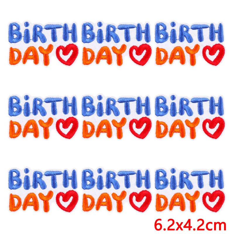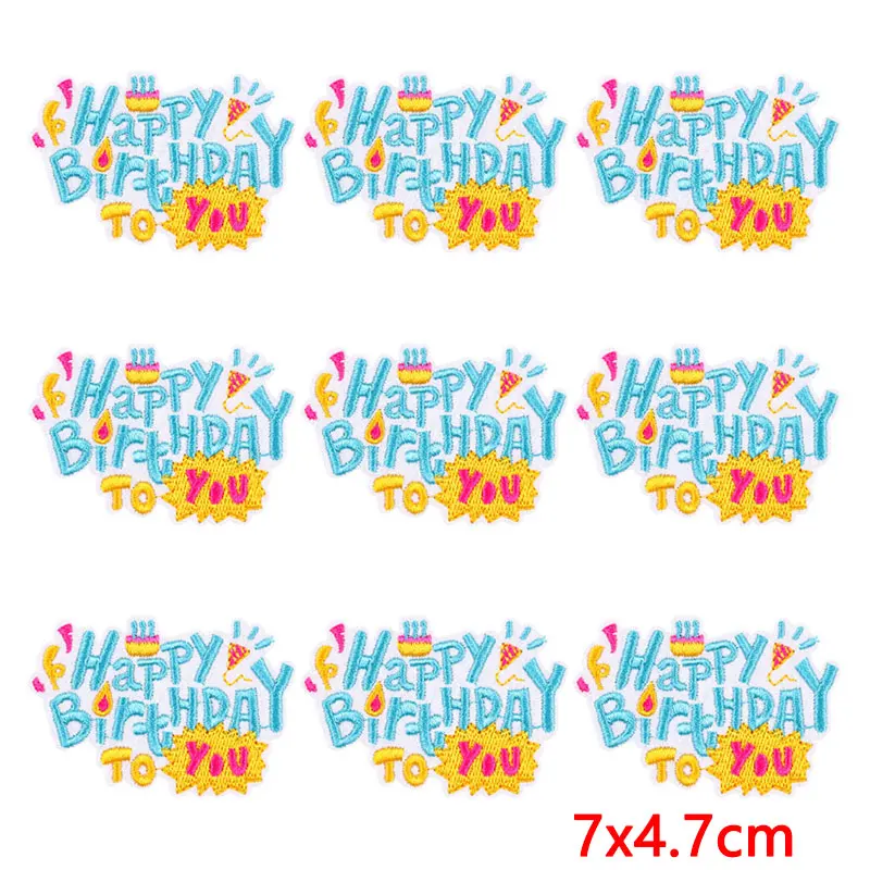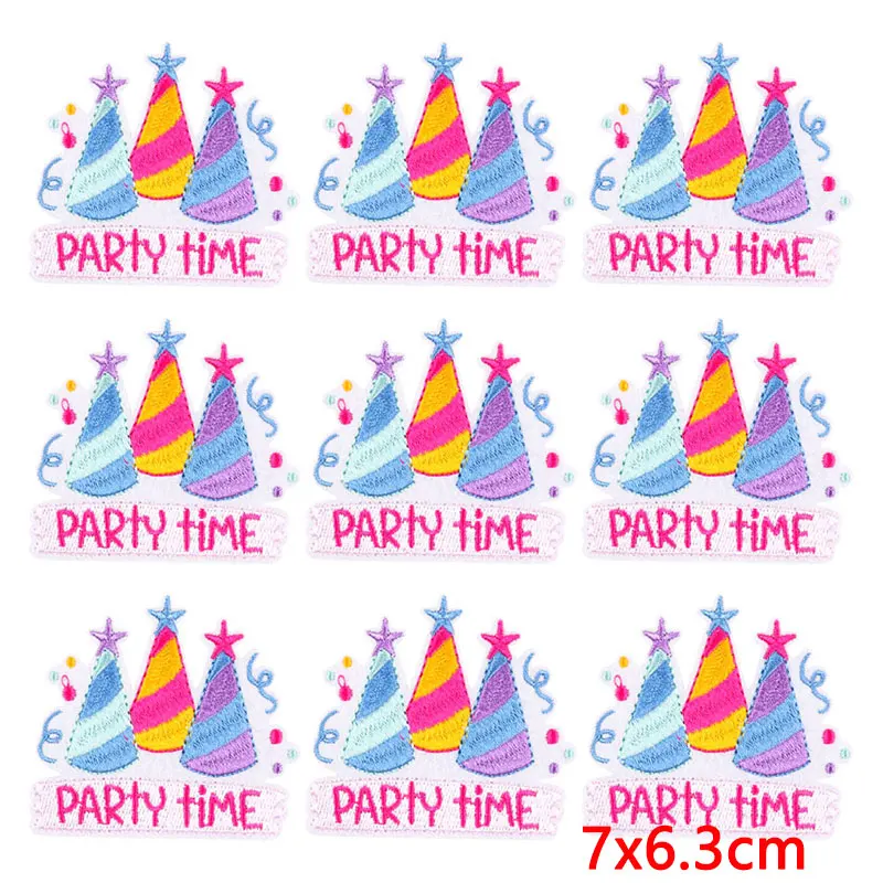 10 unids/lote, venta al por mayor, parches bordados de tiempo de fiesta para ropa, Parche de letras de dibujos animados, parches para planchar en ropa, pegatinas, insignias