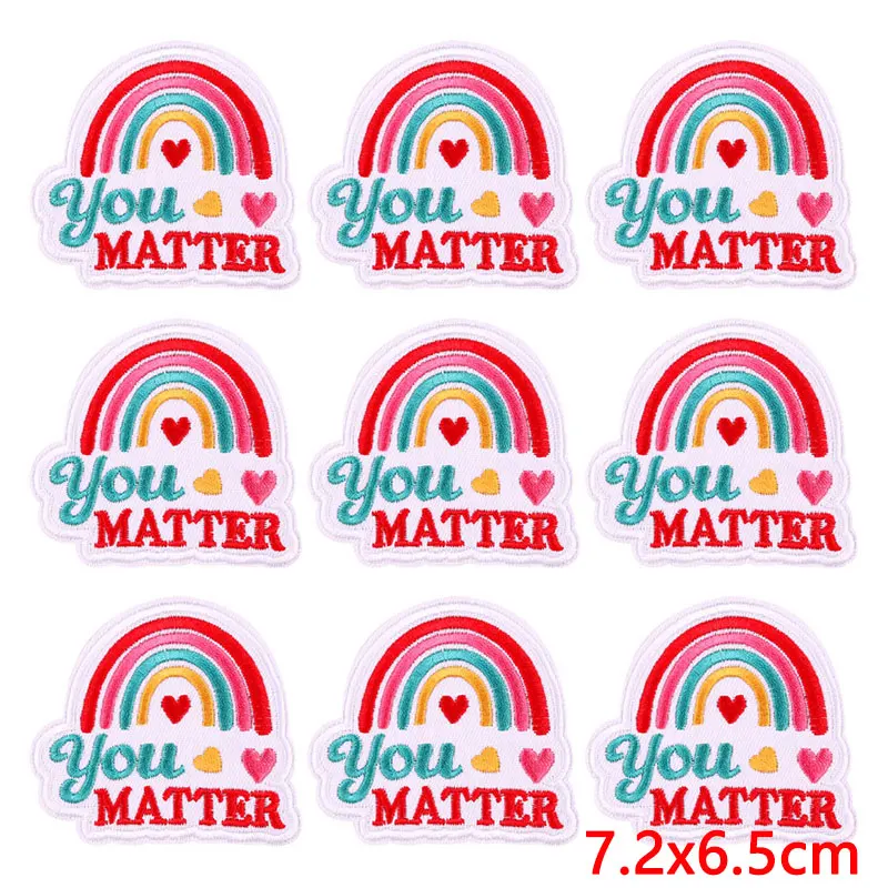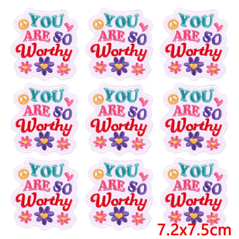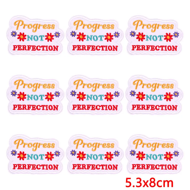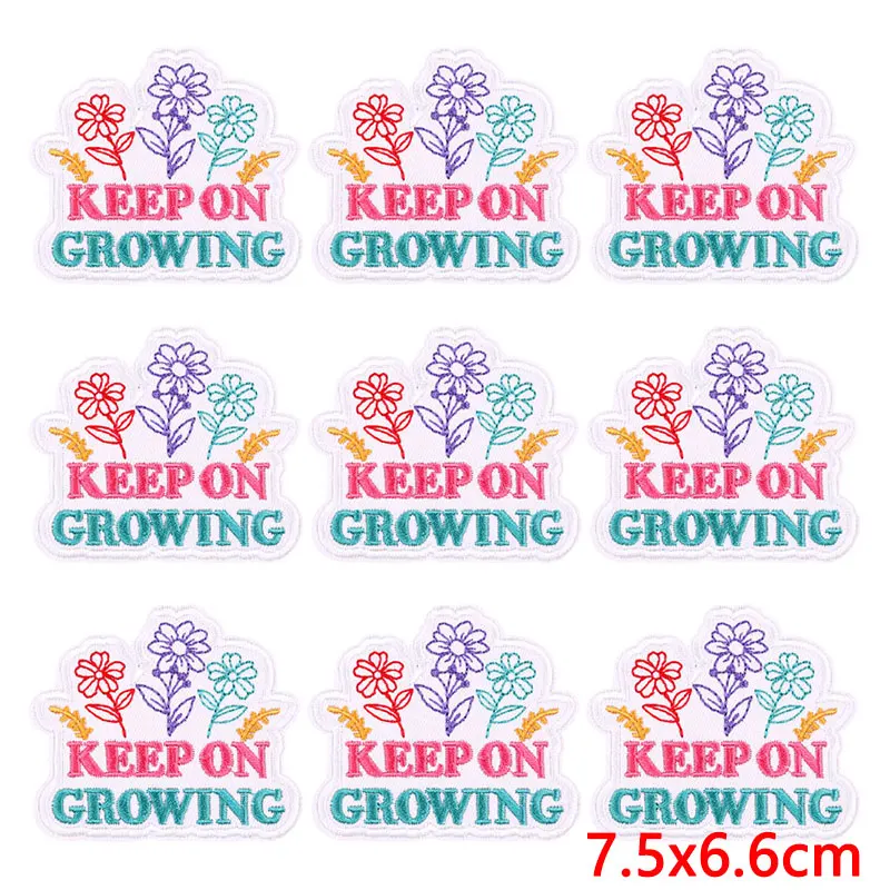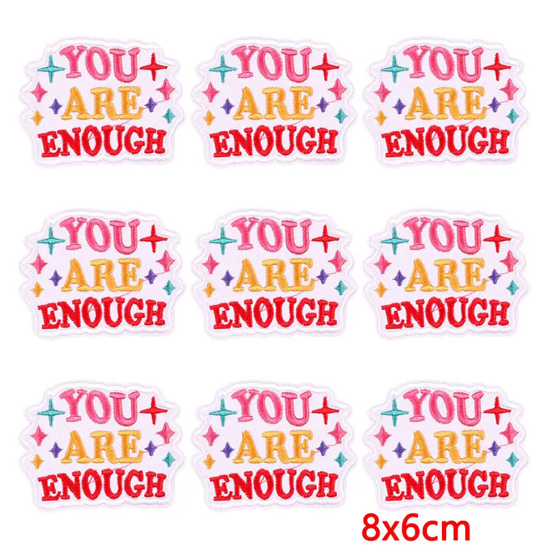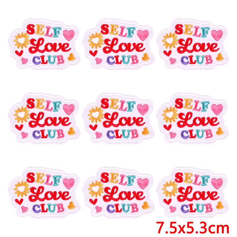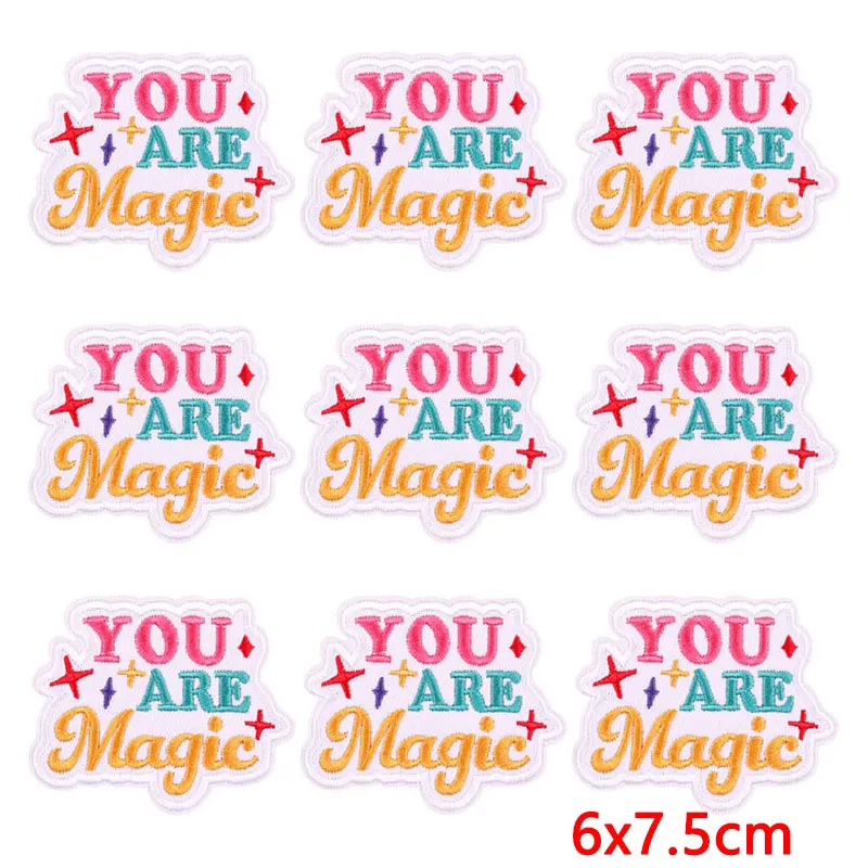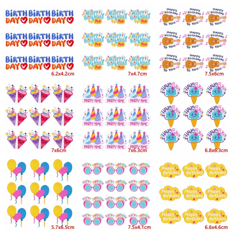 10 unids/lote, venta al por mayor, parches bordados de tiempo de fiesta para ropa, Parche de letras de dibujos animados, parches para planchar en ropa, pegatinas, insignias