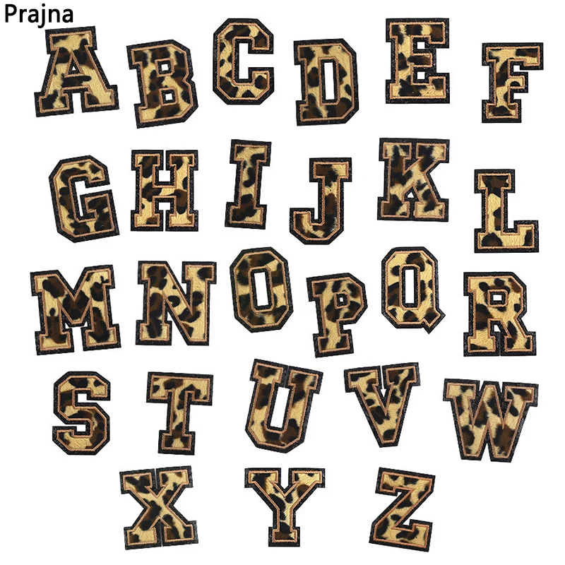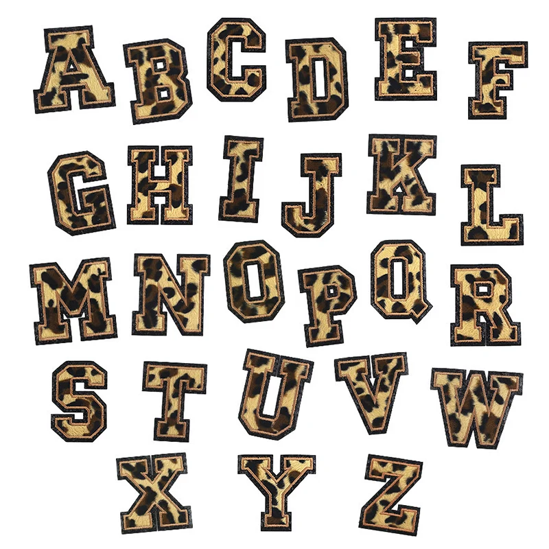 Parches bordados con letras en inglés de leopardo para ropa, accesorios de costura para planchar, 26 piezas, A-Z