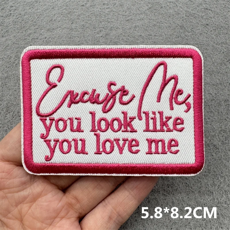 Parches bordados de letras rosas para ropa, parches para planchar DIY para ropa, parche de palabras con eslogan de dibujos animados en insignia de ropa