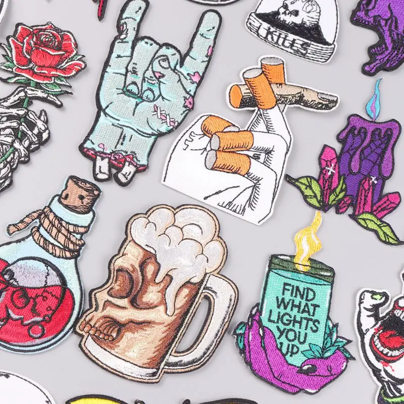Parches bordados de llama para fumar, parches para planchar para ropa, parches fusibles DIY para ropa, pegatinas de insignia con apliques de calavera Punk