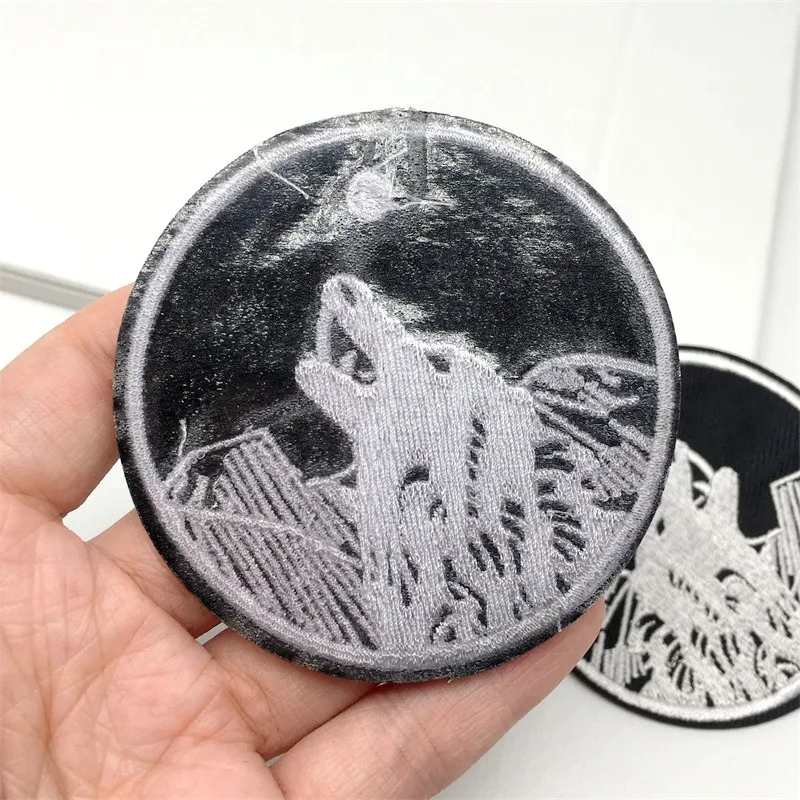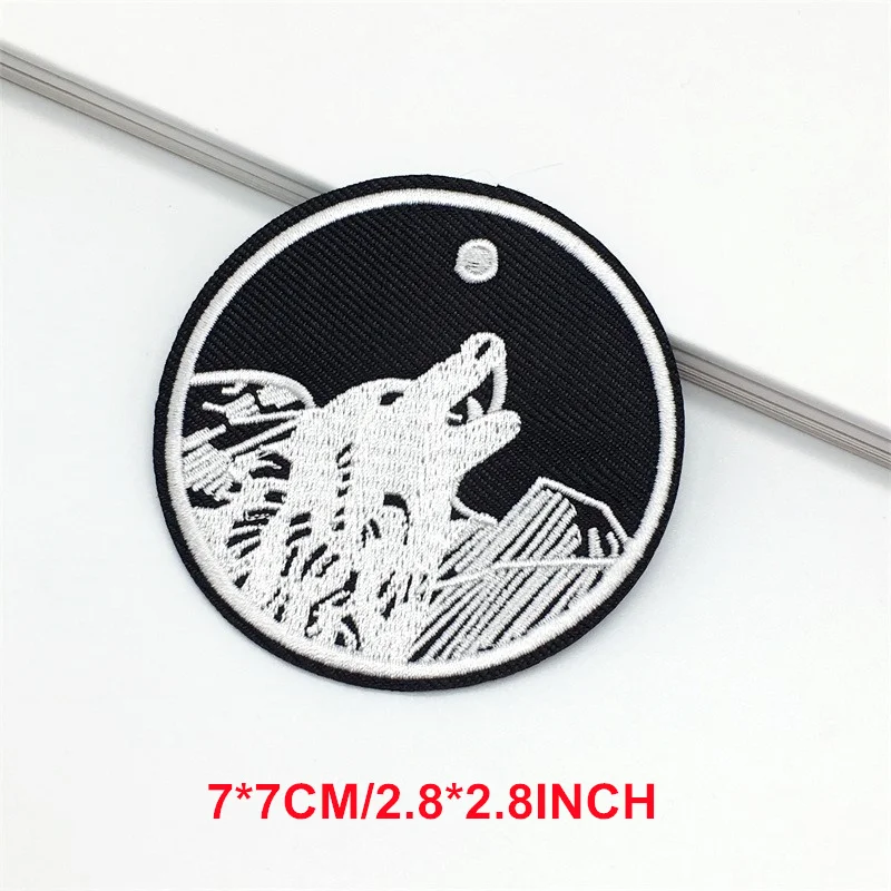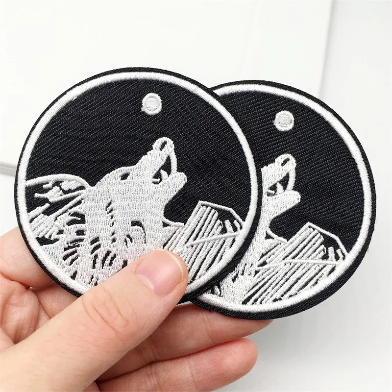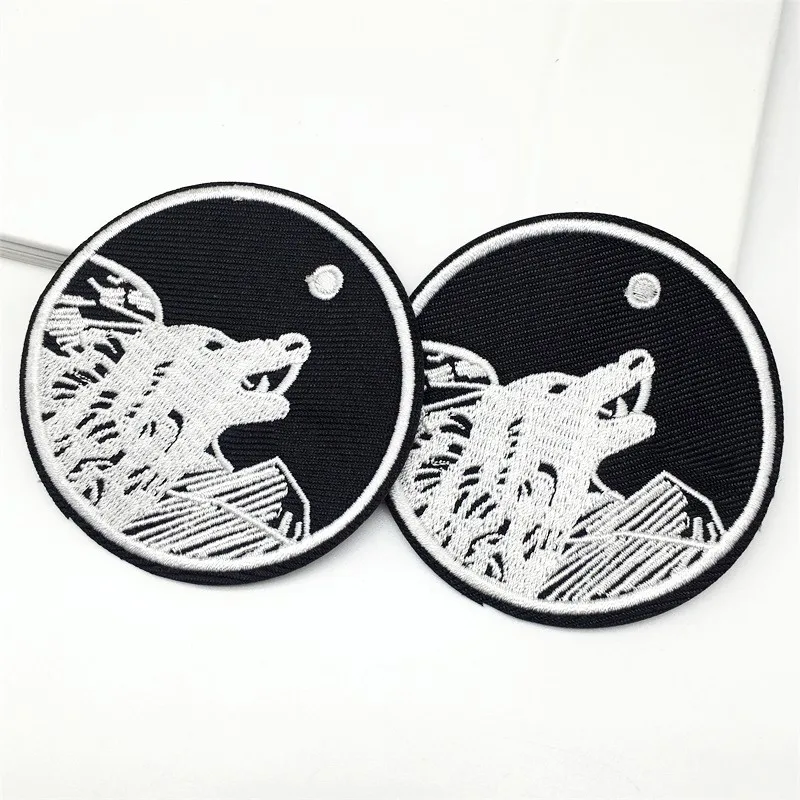 Parches bordados de lobo para ropa, apliques a rayas, insignias negras, pegatinas para coser ropa, parches para planchar, decoración, 2 unidades por lote