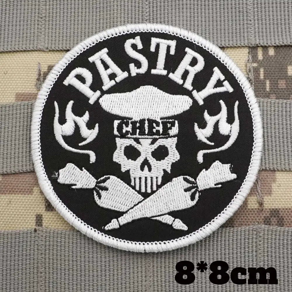 Parches bordados con logotipo de calavera de Chef de pastelería, apliques de etiqueta de costura, banda de motorista punk, insignias de ropa de Rock con respaldo de gancho