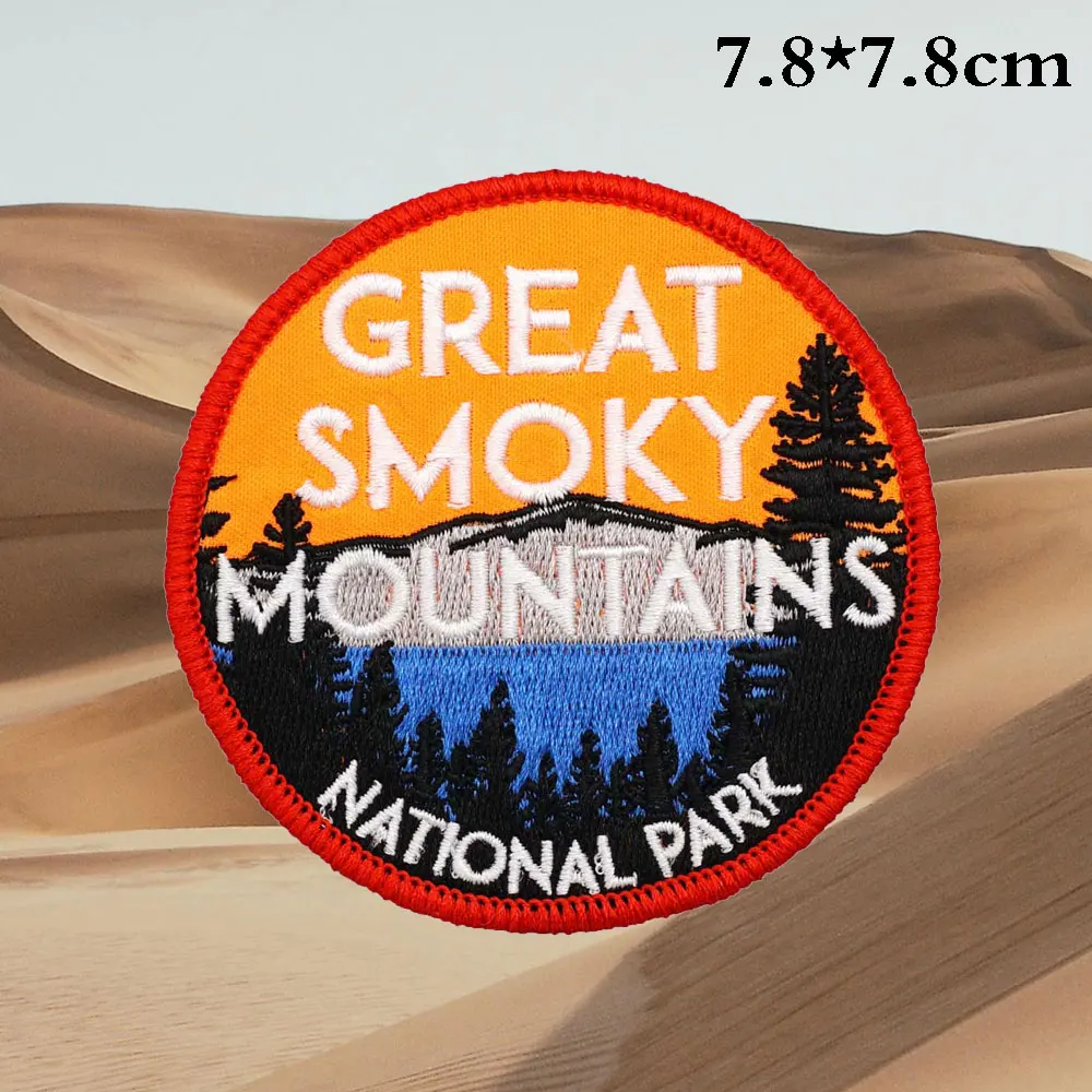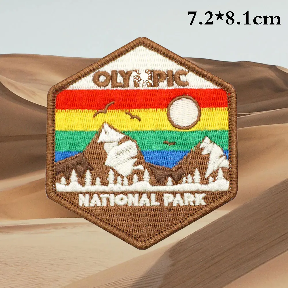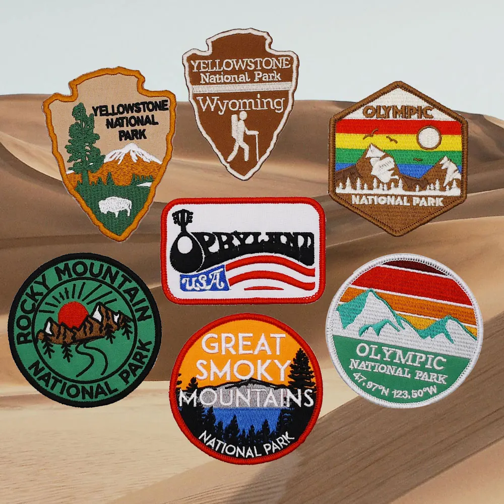 Parches bordados con logotipo del parque, apliques de etiqueta de costura, banda de motorista punk, insignias de ropa de Rock con respaldo de gancho o coser