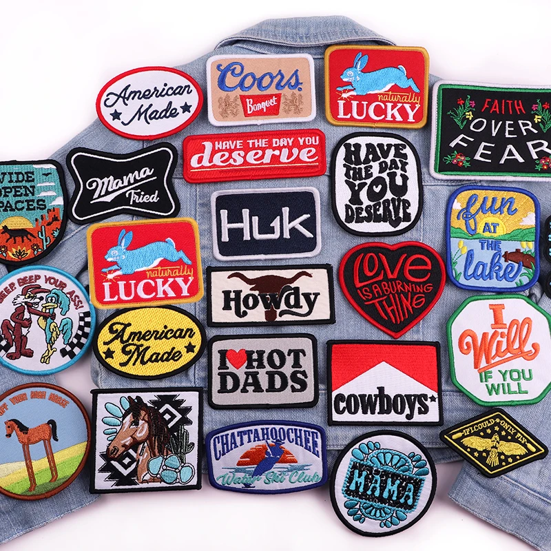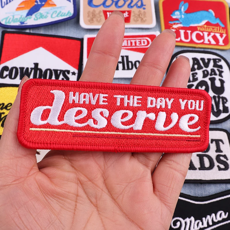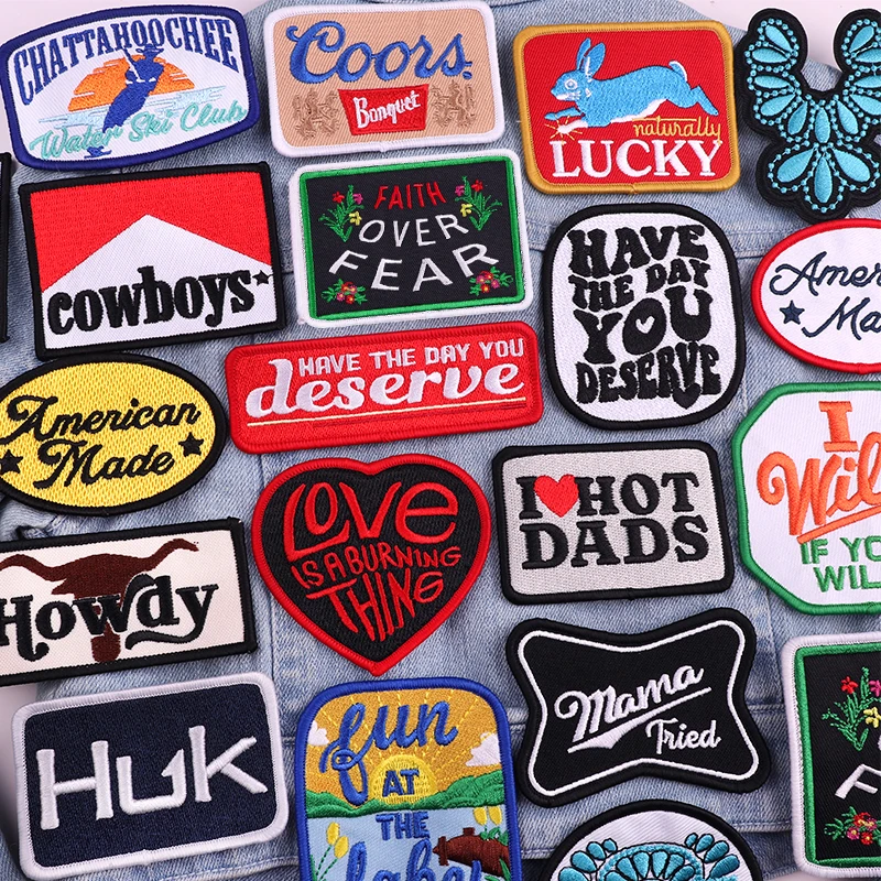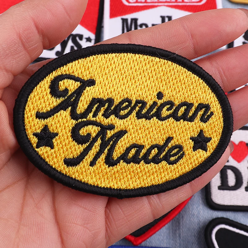 Parches bordados con logotipo de letra Merrow Border, parches para planchar DIY para ropa, mochila, chaquetas, sombreros, insignias para coser, pegatinas
