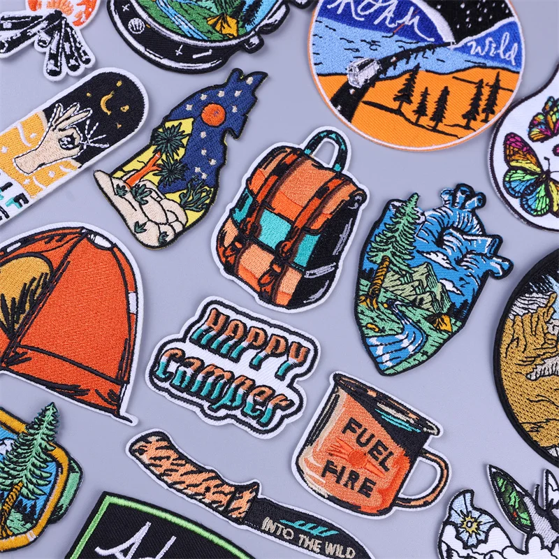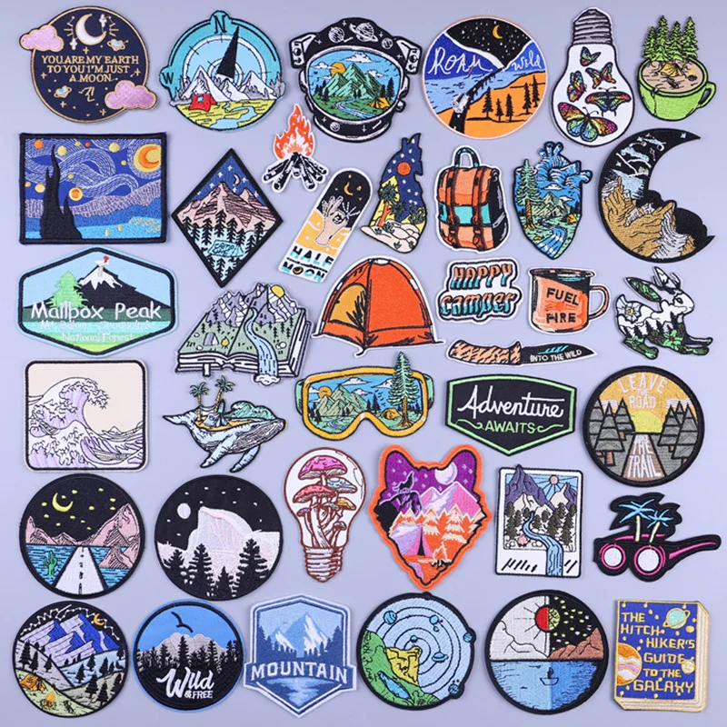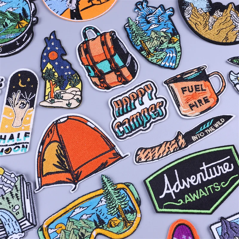 Parches bordados de luna y estrella para exteriores, ropa salvaje, Camping, hoguera, ropa, parche termoadhesivo, parche fusible para planchar