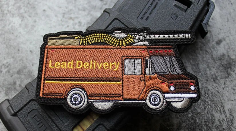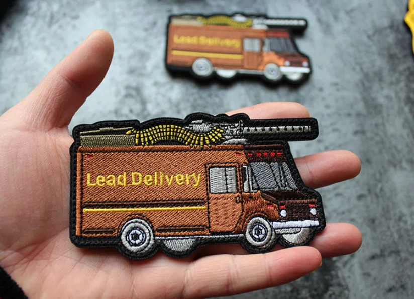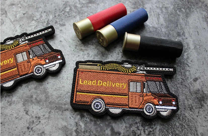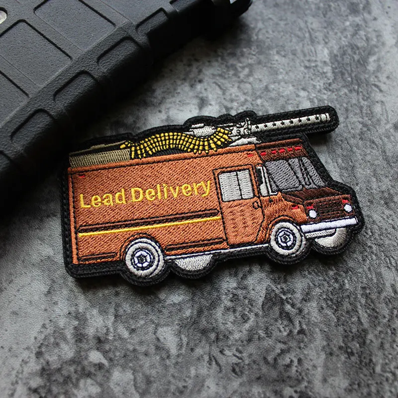 Parches bordados de maquinaria pesada para vehículos de transporte armado, insignia táctica de pistola, pegatinas para ropa, bricolaje, entrega de plomo