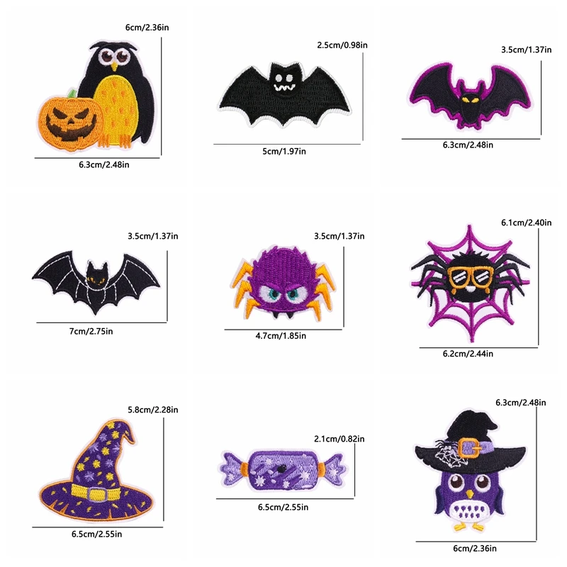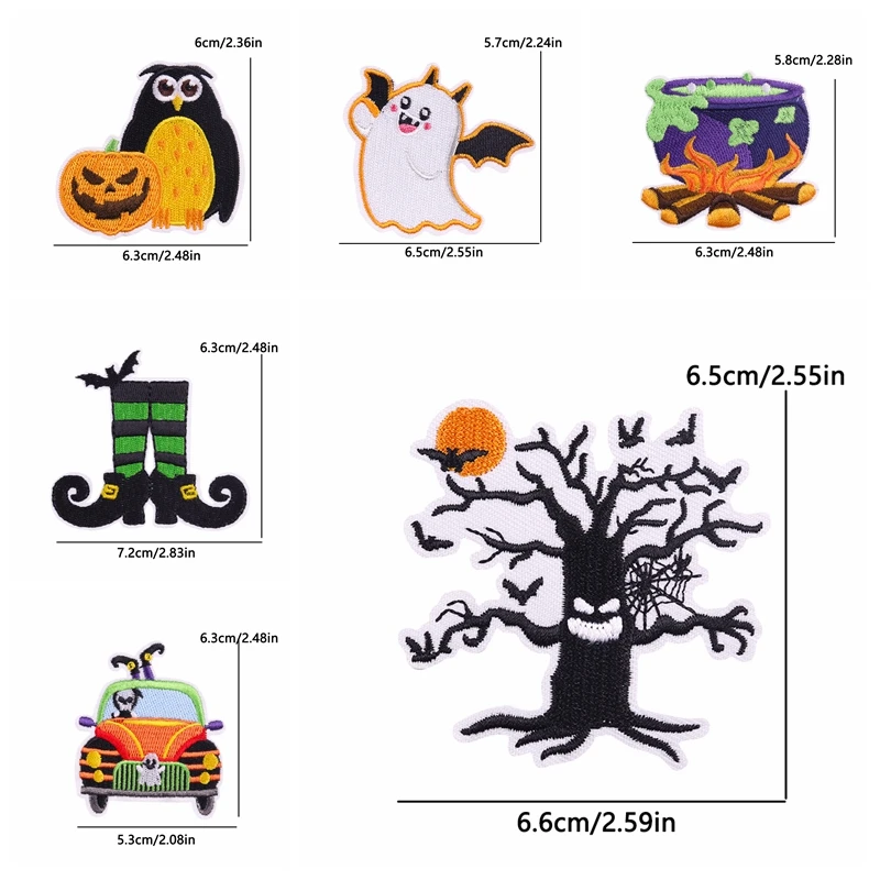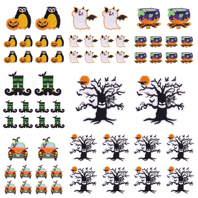 Parches bordados de murciélago de calabaza para ropa, 5 piezas, serie Halloween, para planchar, pegatinas de costura
