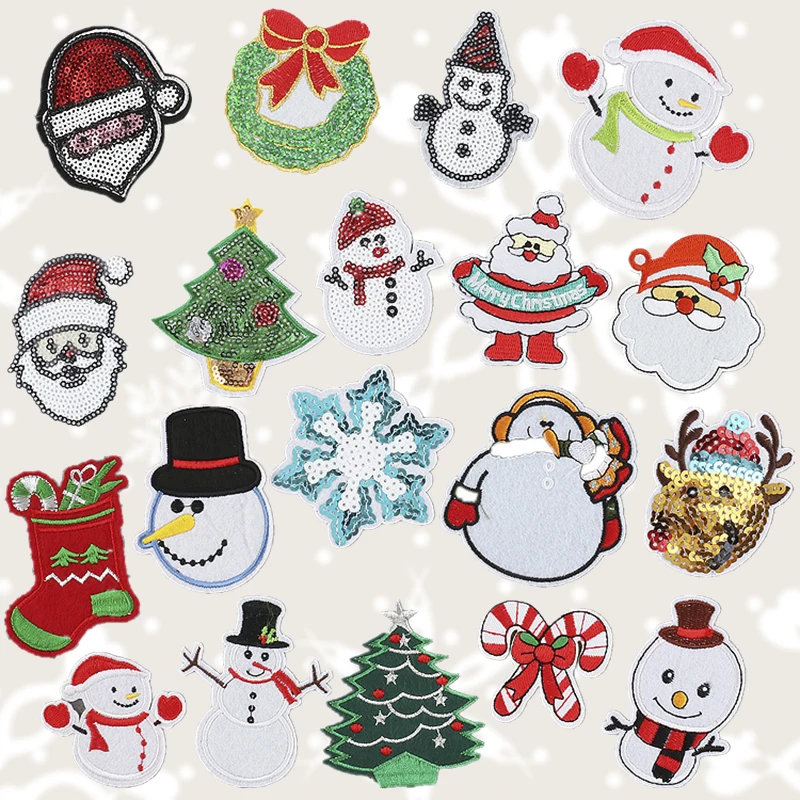 Parches bordados navideños, Papá Noel, muñeco de nieve, insignia punk, parches termoadhesivos DIY, decoración