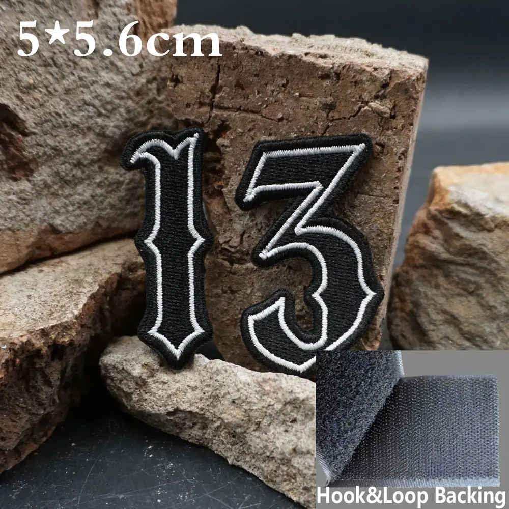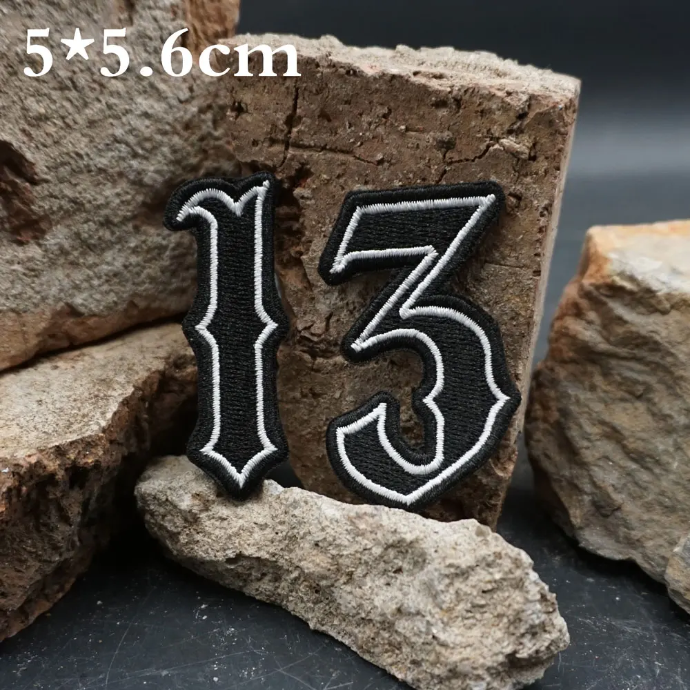 Parches bordados número 13 de la suerte, apliques, etiqueta de costura, banda de motociclista punk, insignias para ropa de Rock con respaldo de gancho