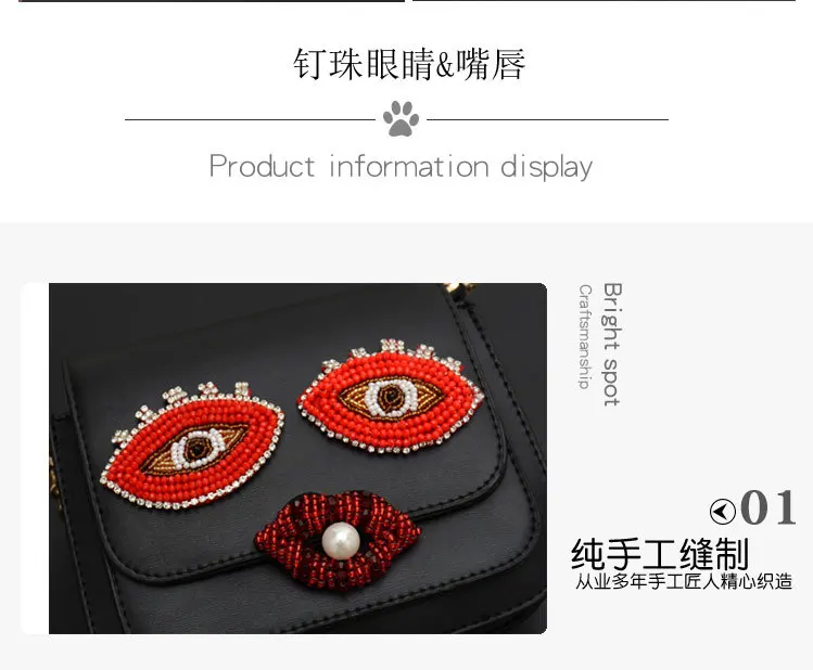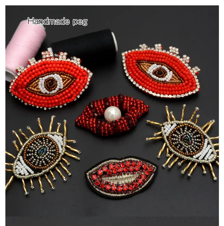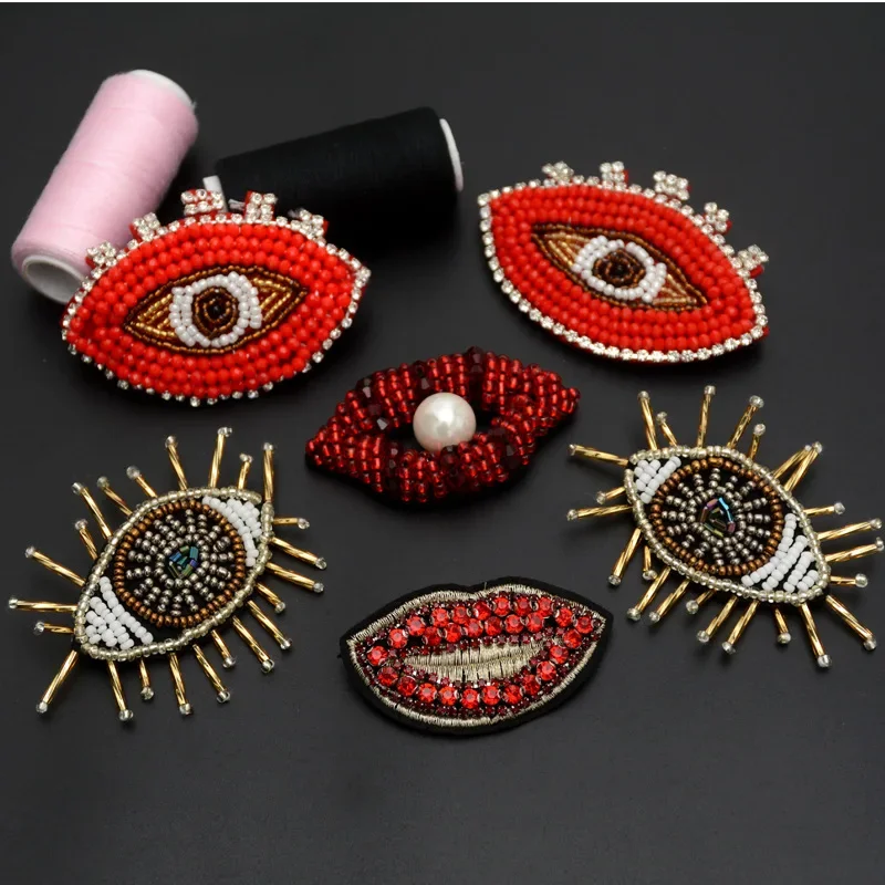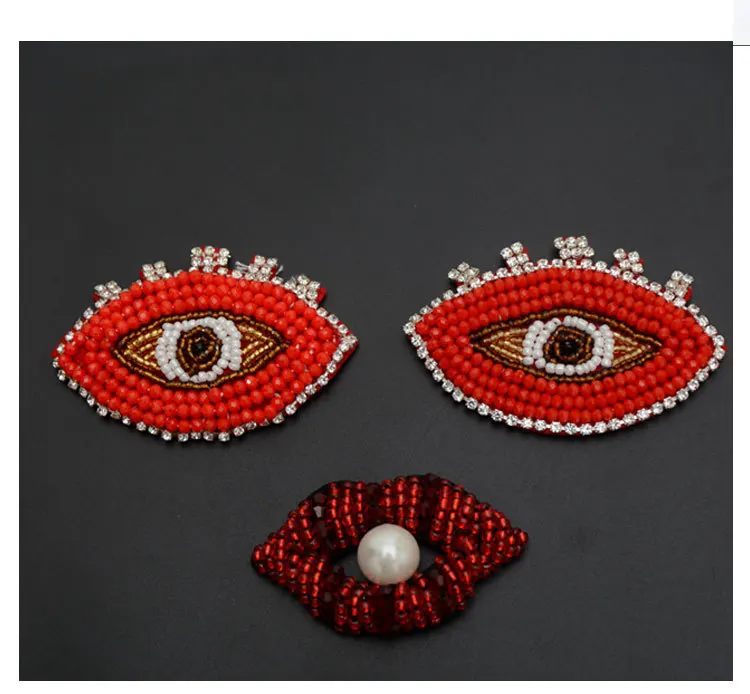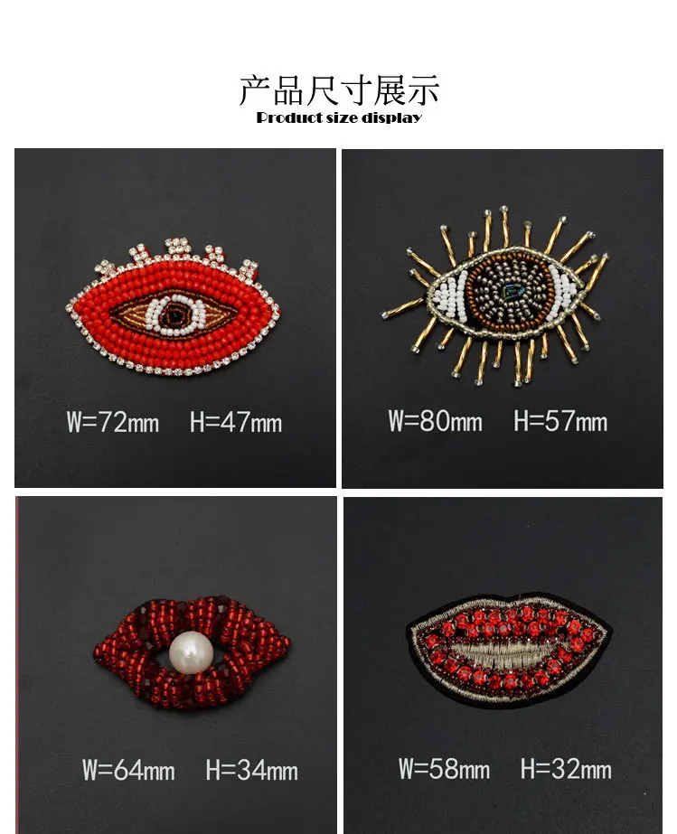 Parches bordados de ojos con cuentas, insignia de labios de diamantes de imitación, accesorios de ropa, pegatina, coser en apliques de cristal para chaquetas, bolsos