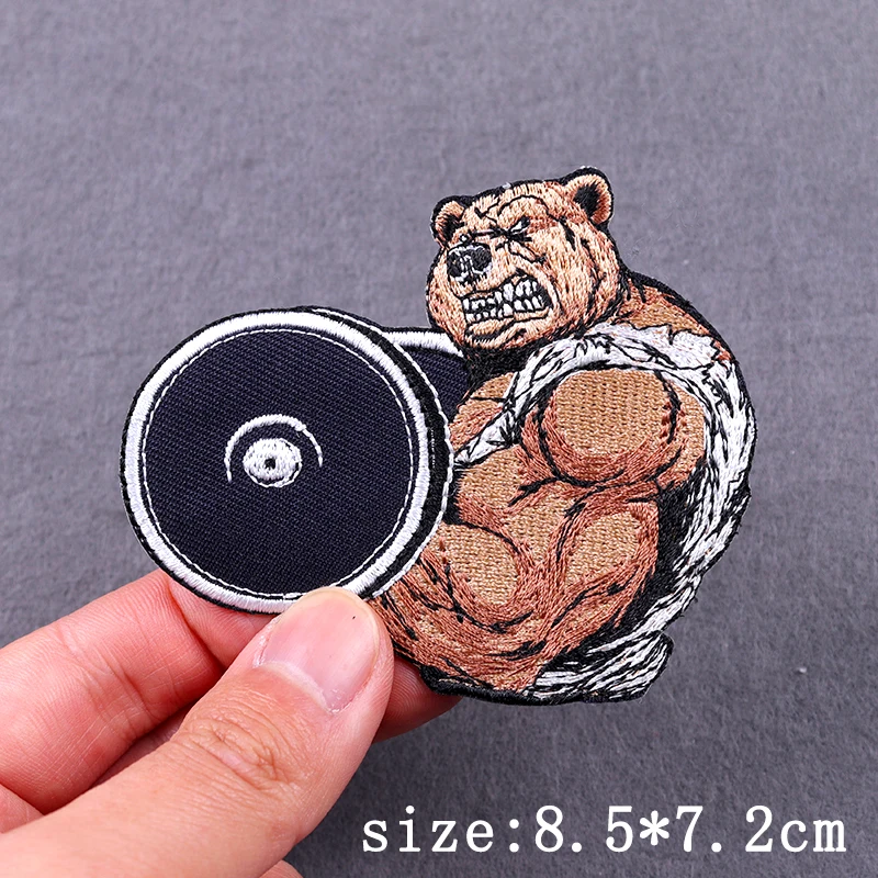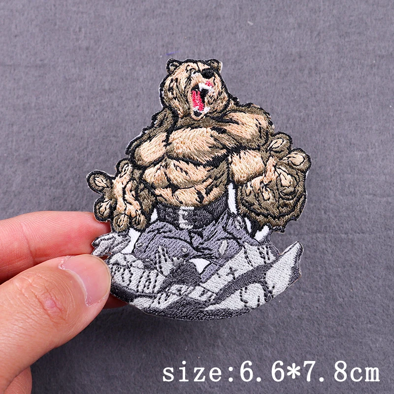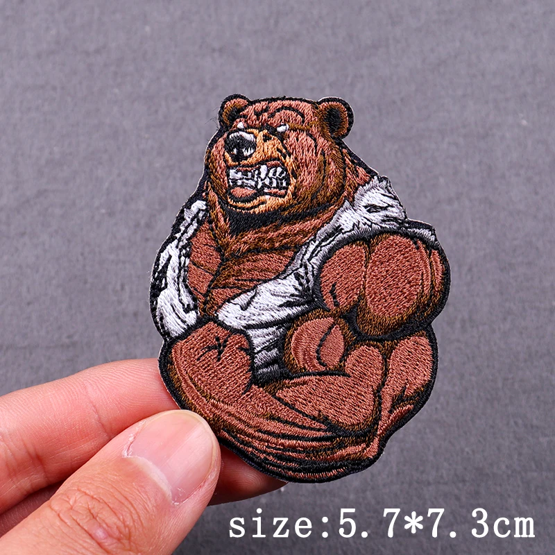 Parches bordados de orangután/Re del oso para ropa Parches termoadhesivos en la ropa Parche de animales muscular para pegatinas de ropa