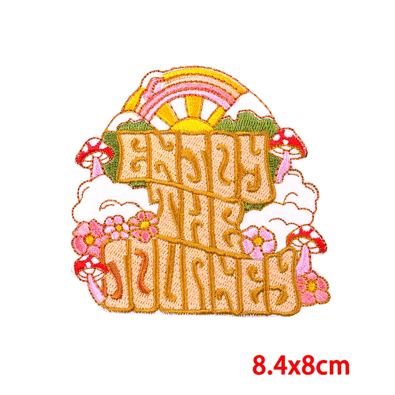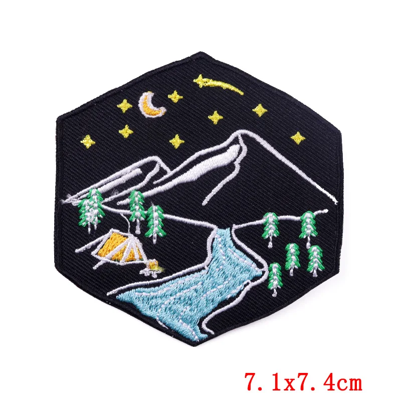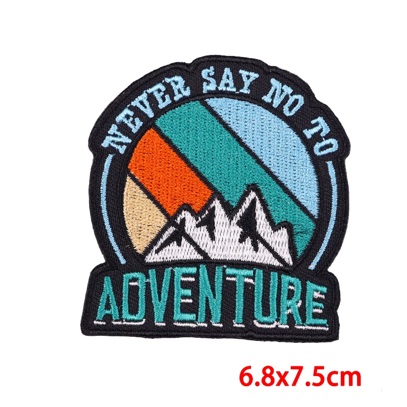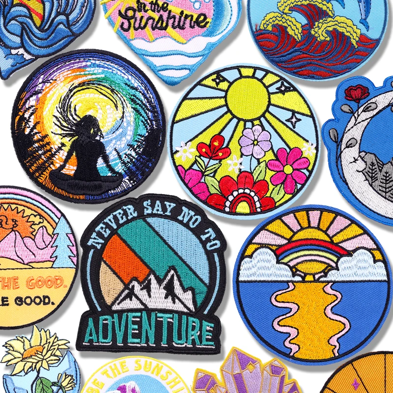 Parches bordados de paisajes al aire libre de aventura de montaña, parches de hierro, parche de ondas solares DIY, mochila, chaquetas, insignia bordada cosida