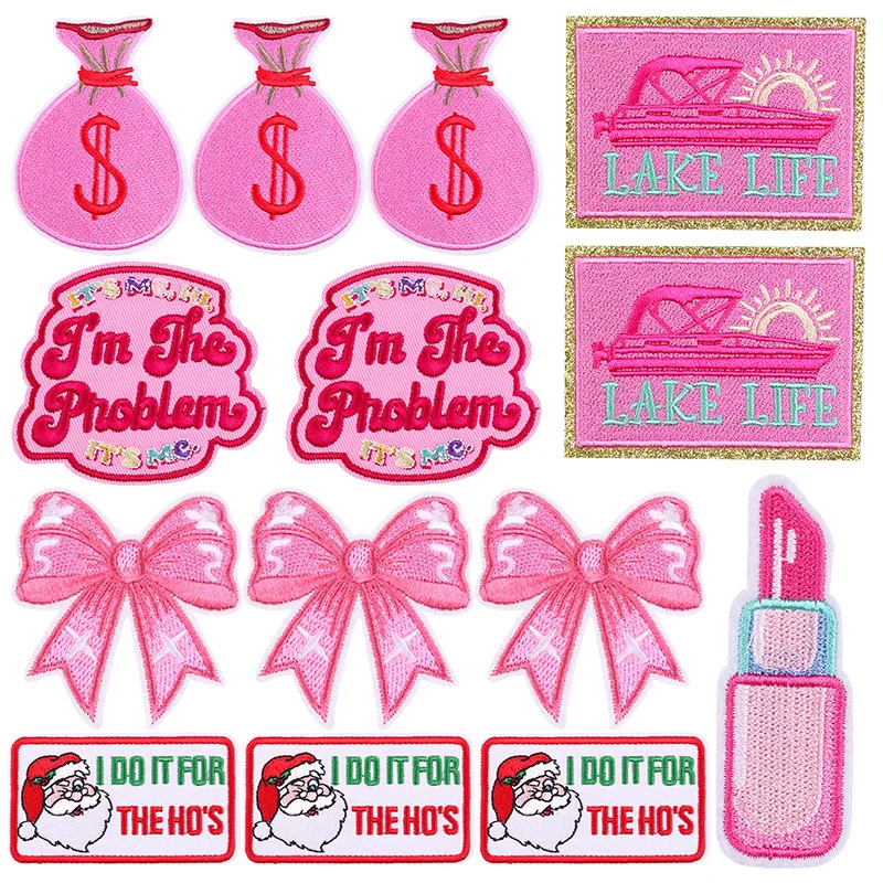 Parches bordados de pajarita rosa YK2, 10 Uds., venta al por mayor, para chaqueta/sombrero, lápiz labial, parches para planchar para ropa, apliques, insignia adhesiva
