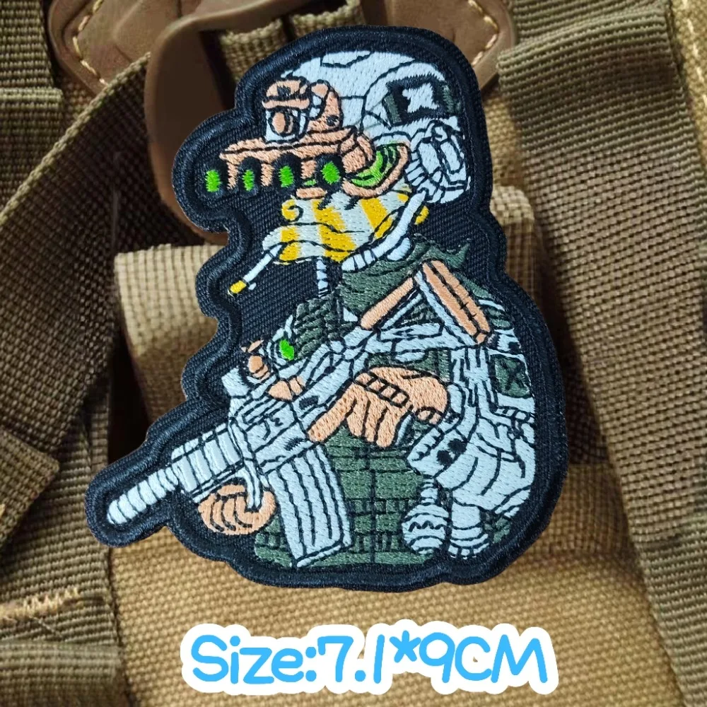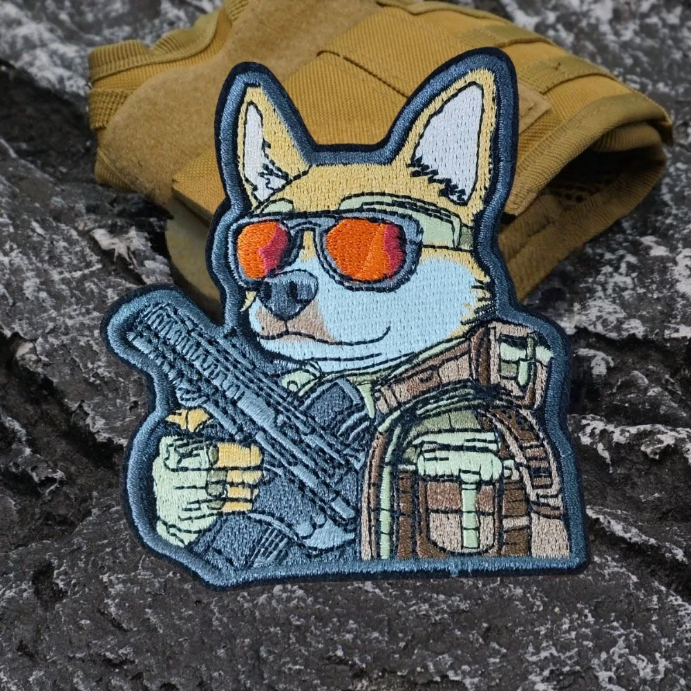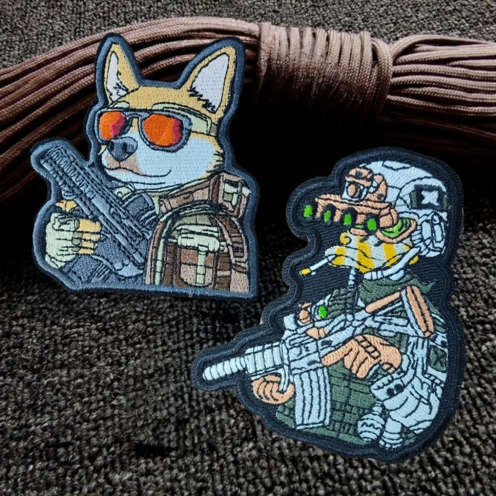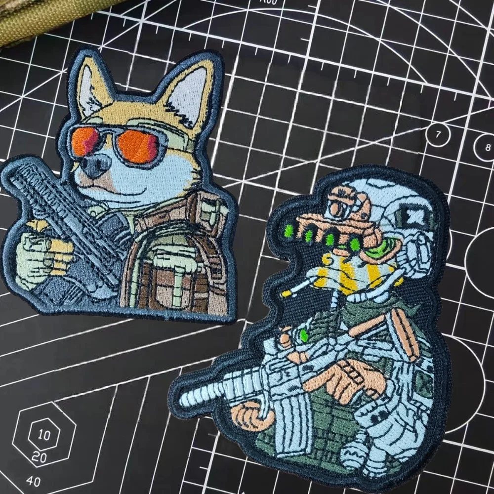 Pistola Wield misión combate pato bordado parches dibujos animados Anime Fuerzas Especiales oficial perro Guerrero moral insignia mochila pegatinas