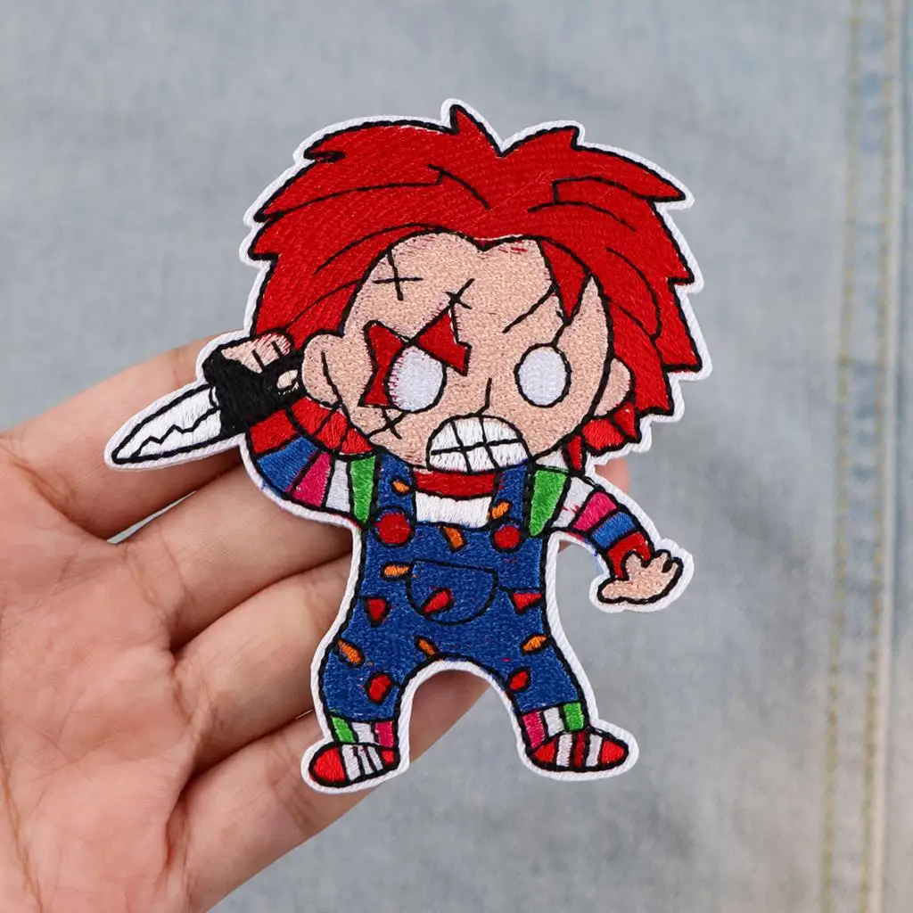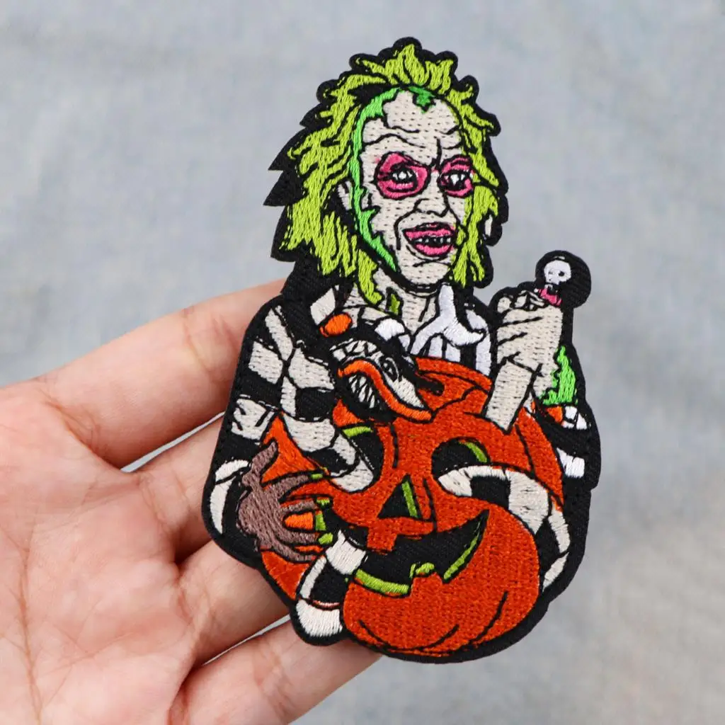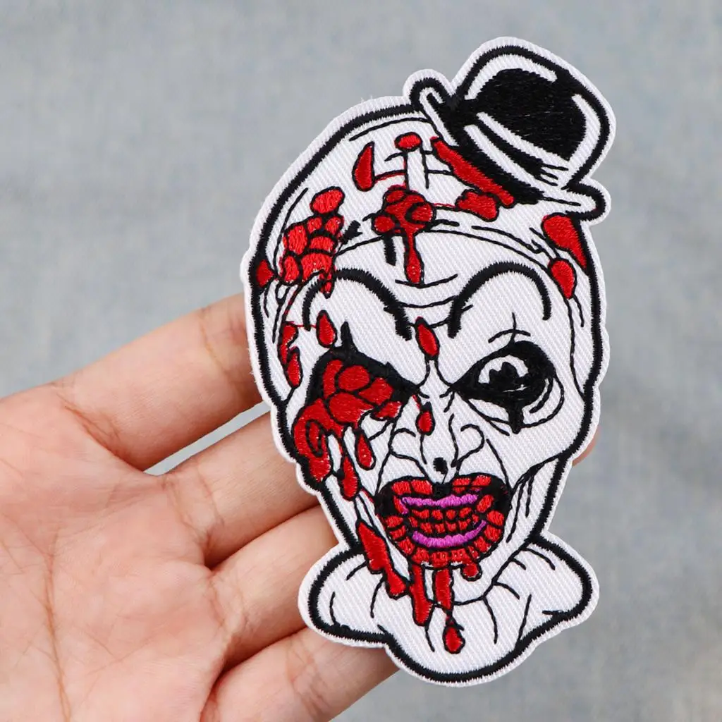 Parches bordados de payaso asesino de terror para ropa, pegatinas de Halloween, parches para planchar, rayas, apliques Diy
