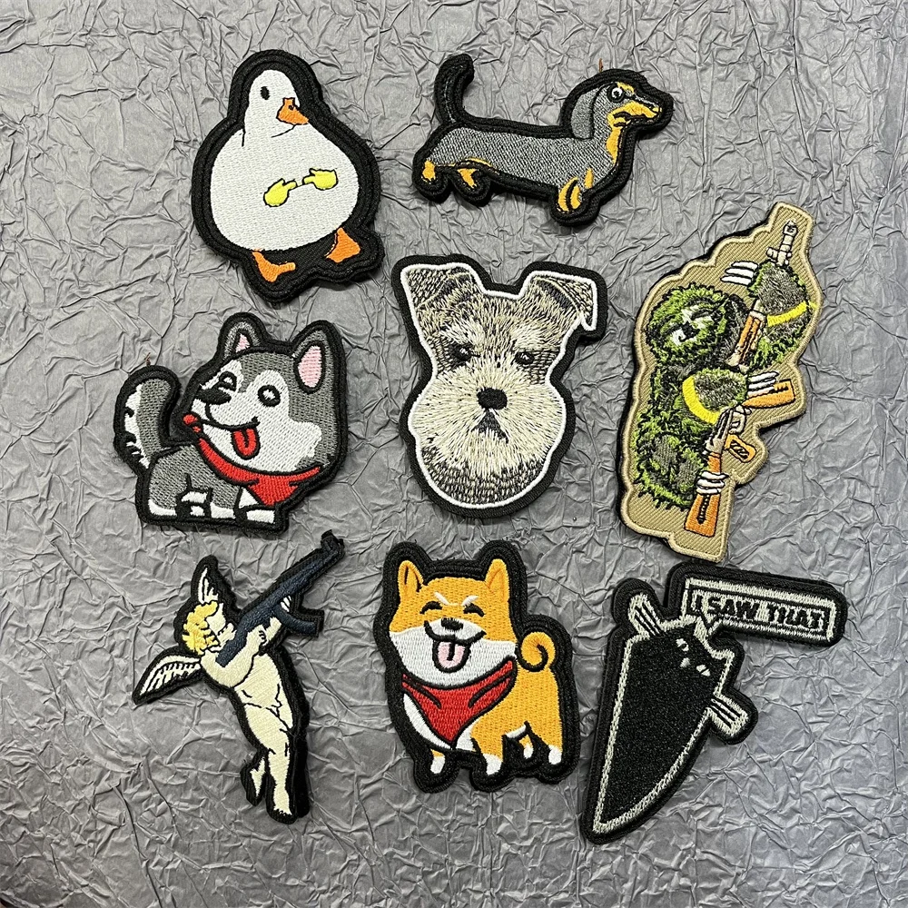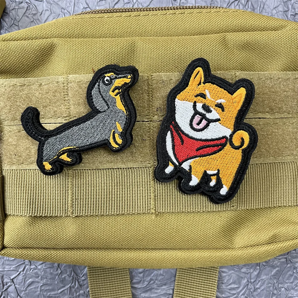 Parches de perro de dibujos animados bordados en ropa gancho y bucle mochila insignias tácticas parche de Anime apliques para ropa