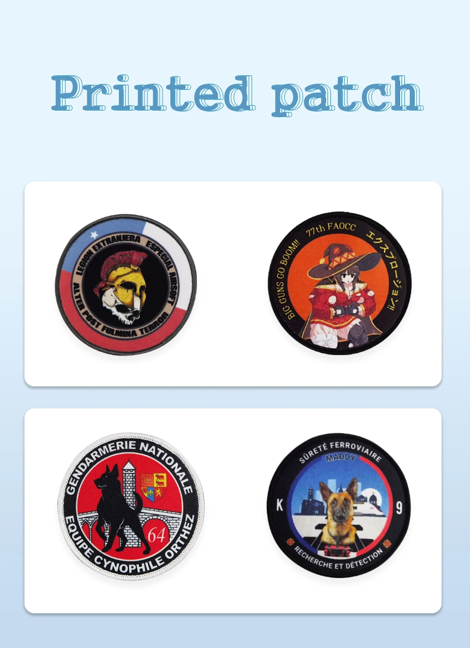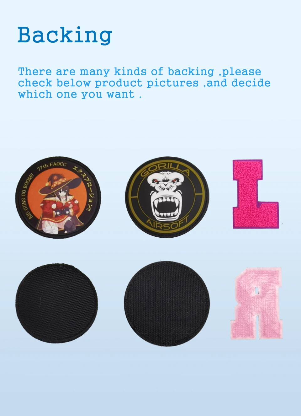 Nuestros principales tipos de parches personalizados son parches bordados, parches de PVC, parches de chenilla, parches impresos y parches tejidos.