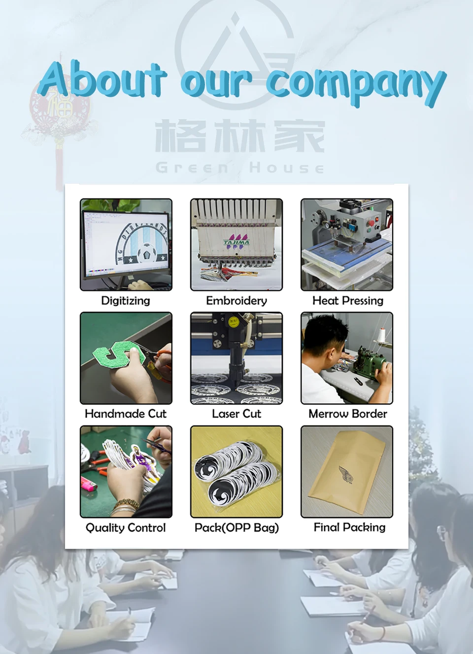 Tecnología Co.,LTD. De Shenzhen Gelinjia. Establecido en China en 2010, nos especializamos en la producción de varios bordados, bordados regulares, bordados de cuentas, parches tejidos, parches de metal, parches de PVC, llaveros, etc.