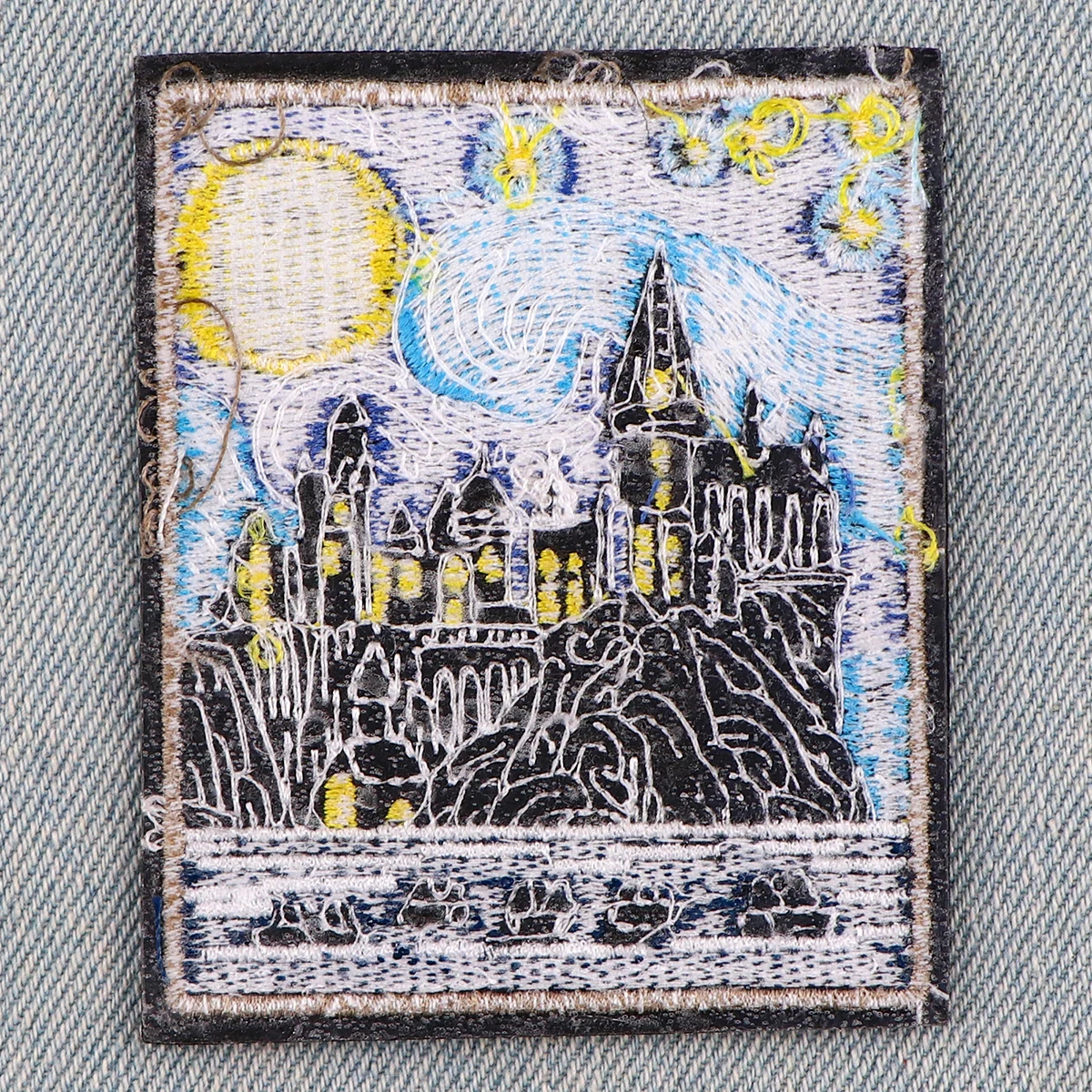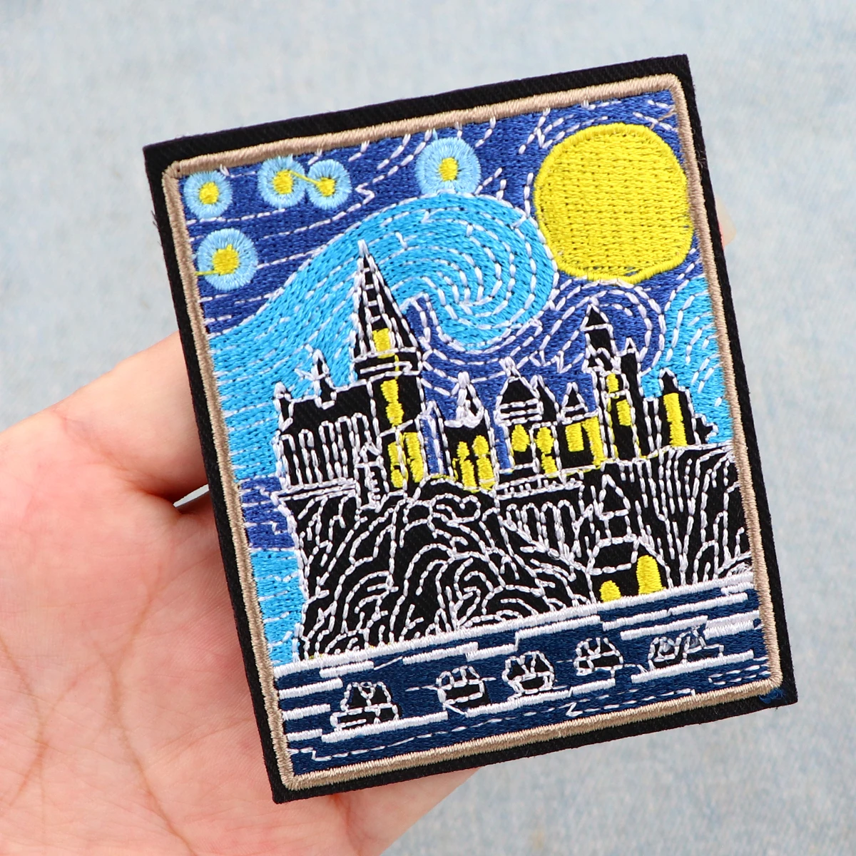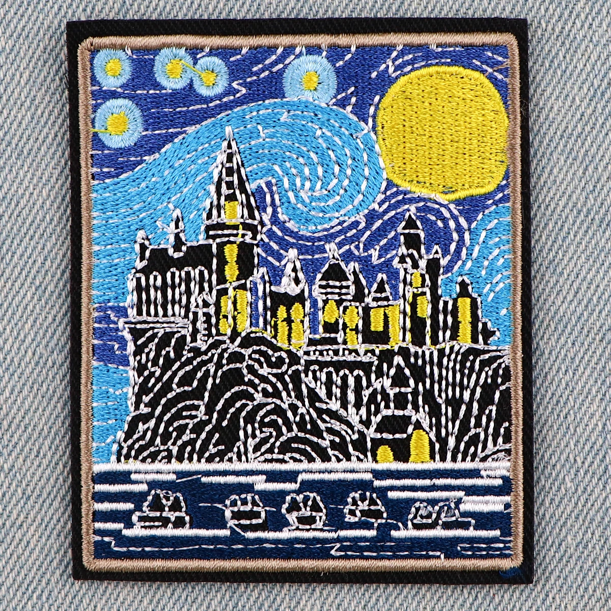 Parches bordados de pintura al óleo artística de Van Gogh para ropa, parches para planchar, parches de cielo estrellado para ropa, apliques, insignias a rayas