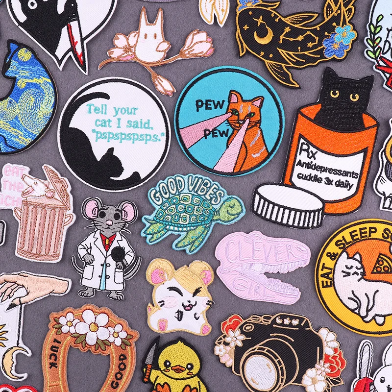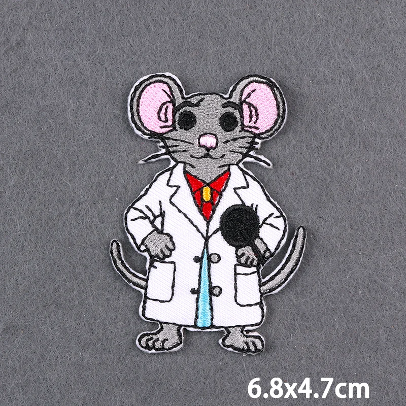 Parches bordados con plancha para coser gatos de dibujos animados para ropa, parches termoadhesivos para ropa/sombrero, parche con personalidad de ratón y tortuga