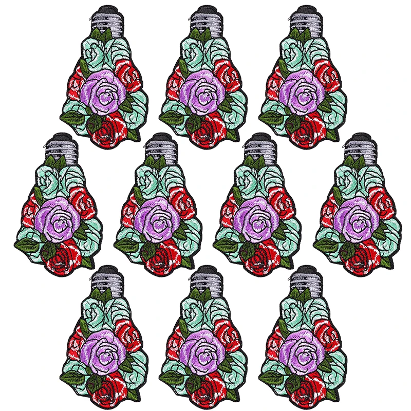 Parches bordados para planchar en la ropa, apliques de decoración rosa para exteriores, 10 unidades por lote