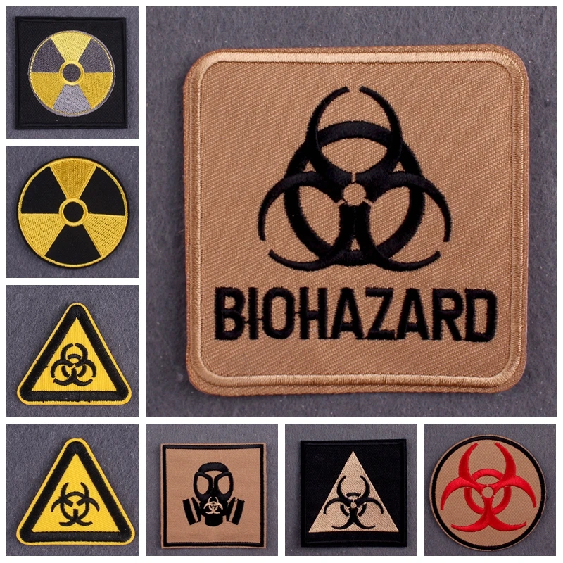10 unids/lote parches de señal de advertencia nuclear bioquímica para ropa acosadores parche de Chernobyl parches bordados en rayas de ropa