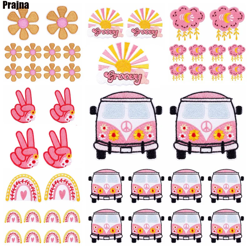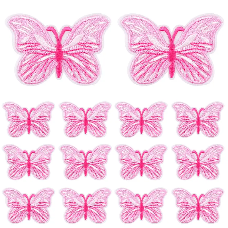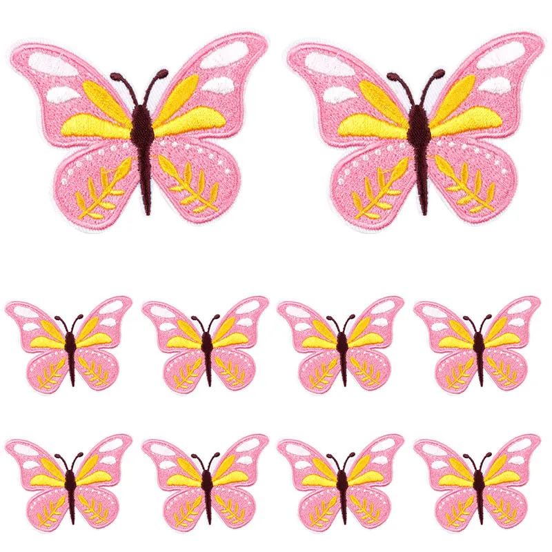 10 unids/lote de parches de mariposa de flores arcoíris, parches bordados de coche de dibujos animados en la ropa, parches de hierro para ropa, pegatinas para coser