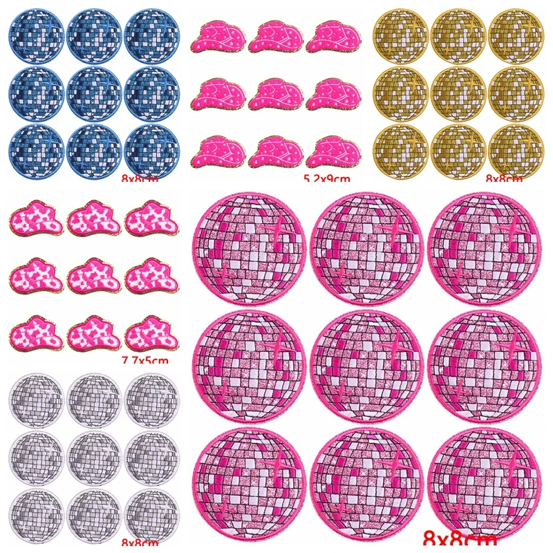 10 unids/lote, venta al por mayor, sombrero de bola de discoteca, parches bordados para planchar, parches termoadhesivos para ropa, apliques para ropa