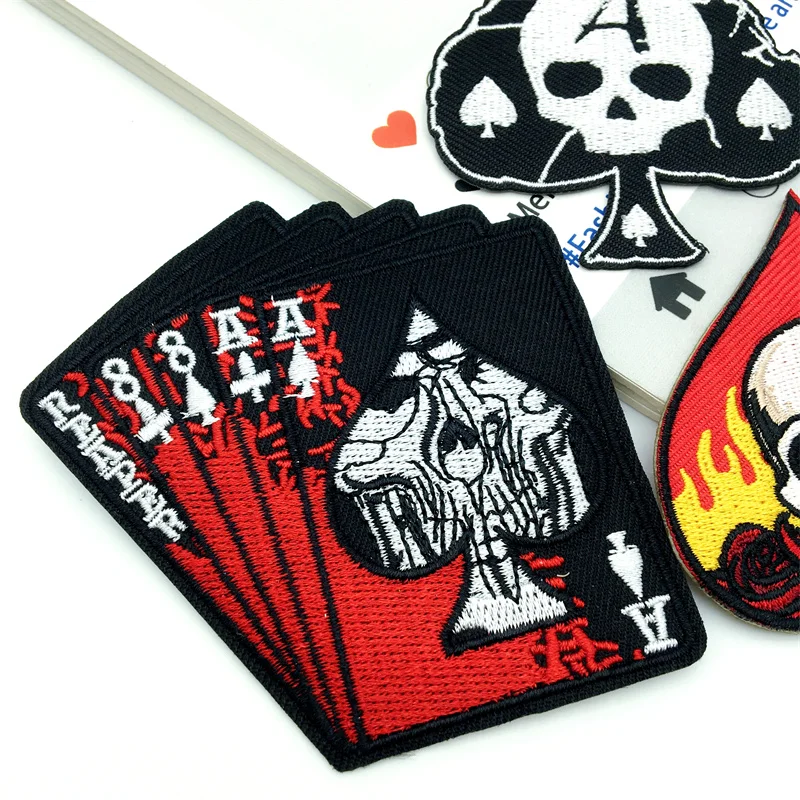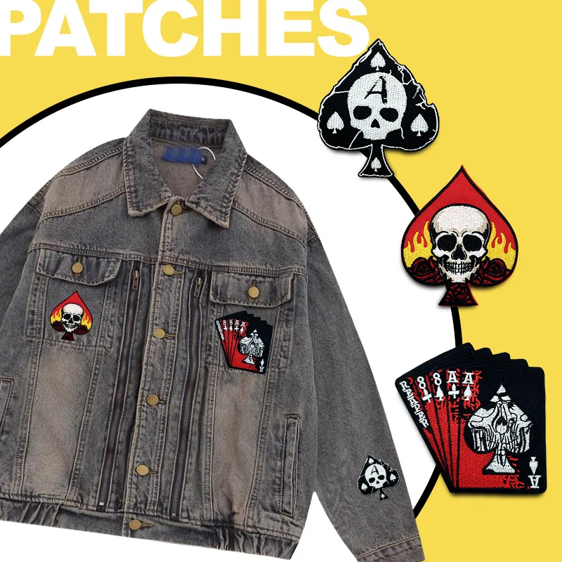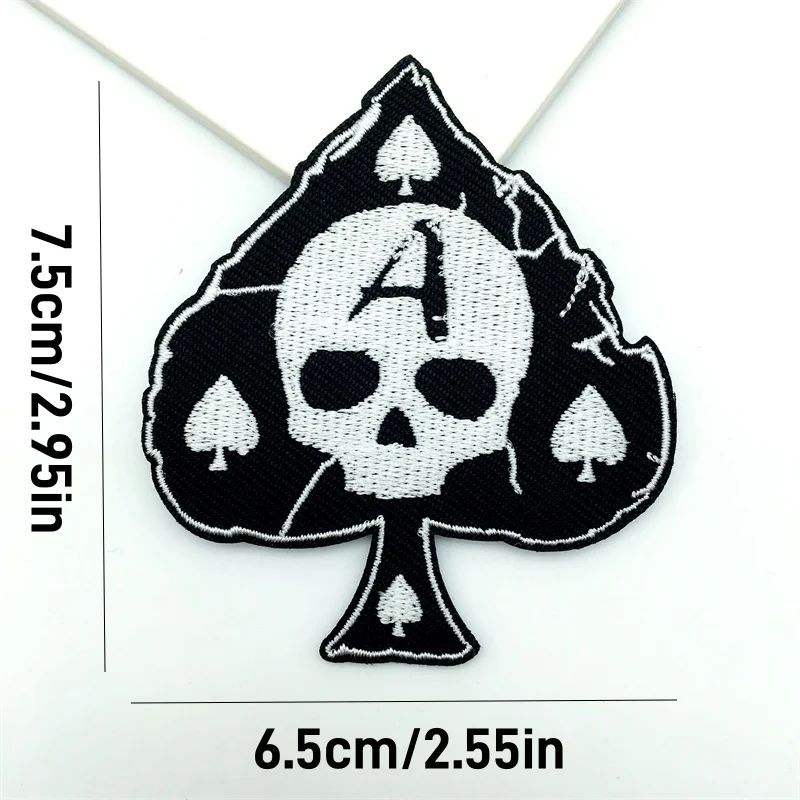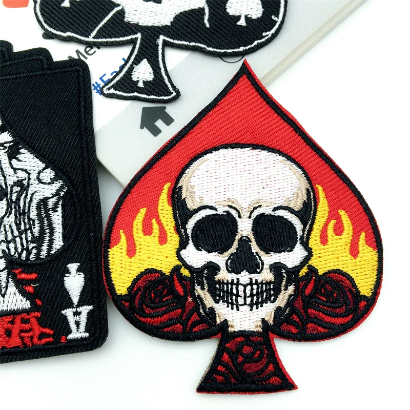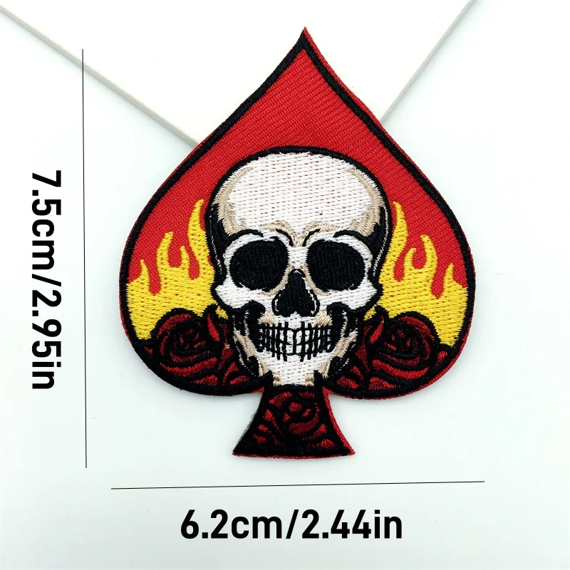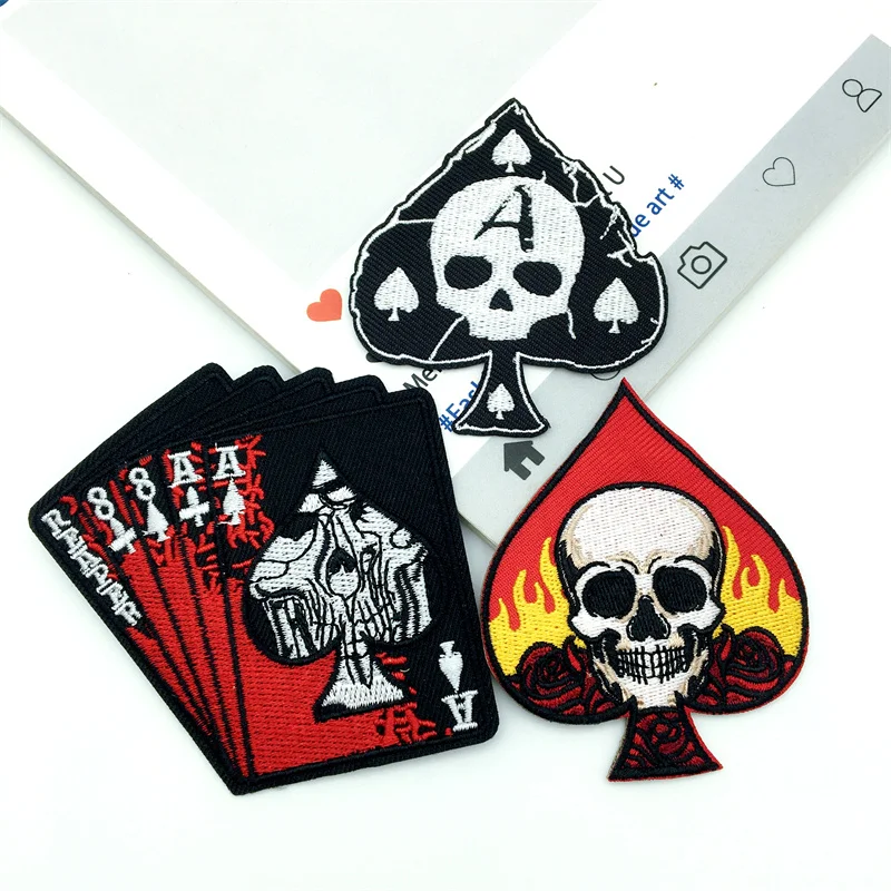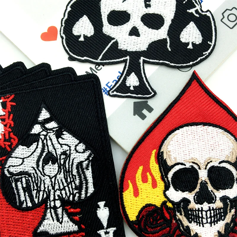 Parche de Calavera para Jugar a las Cartas, Parches de Hierro para Ropa, Bordado Punk, Pegatinas para Ropa, 3 piezas