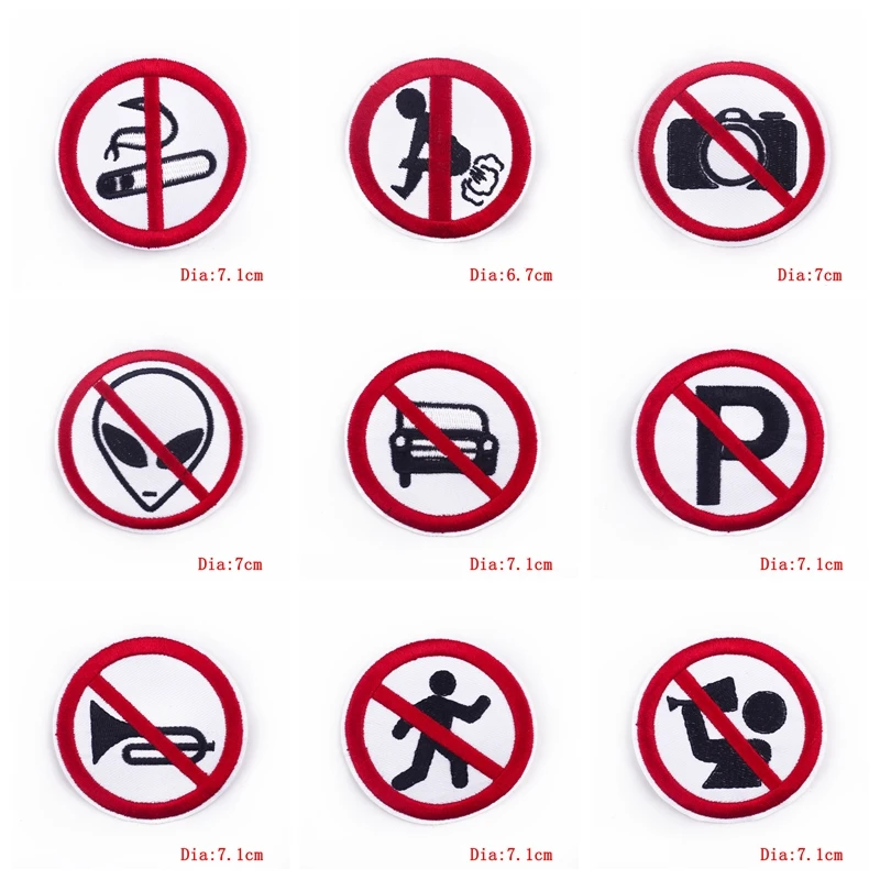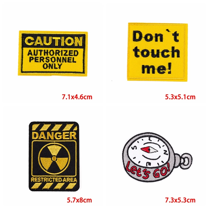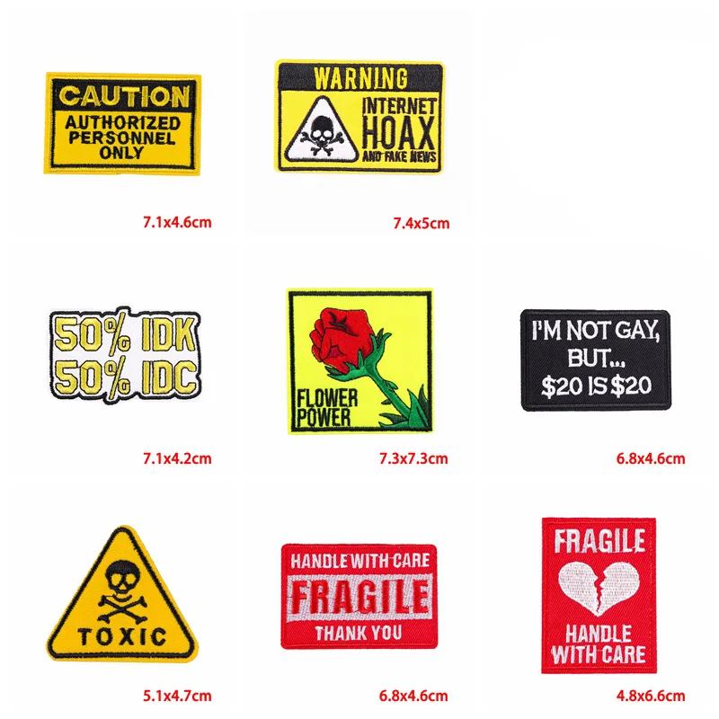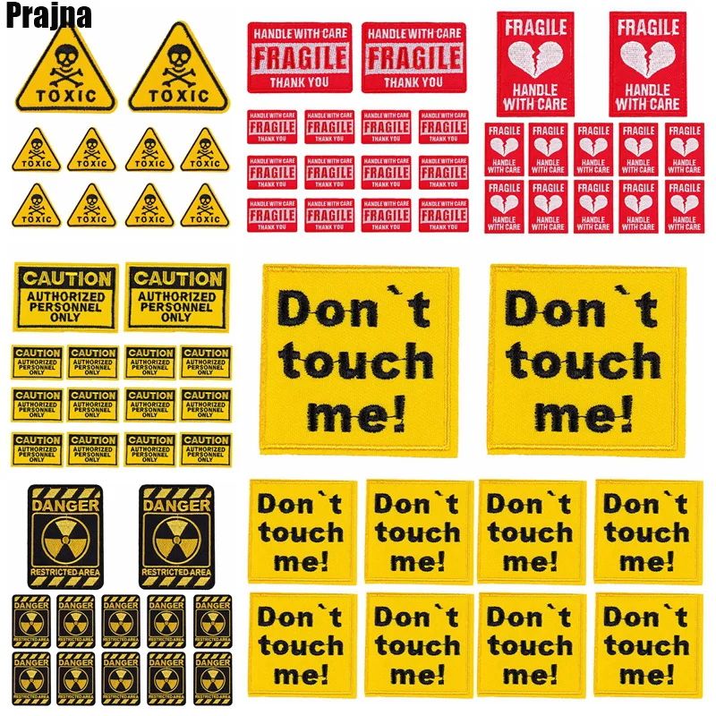Parches bordados de precaución para ropa, eslogan de prohibición, mochila para Jeans, pegatina para coser, bricolaje, 10 unids/lote