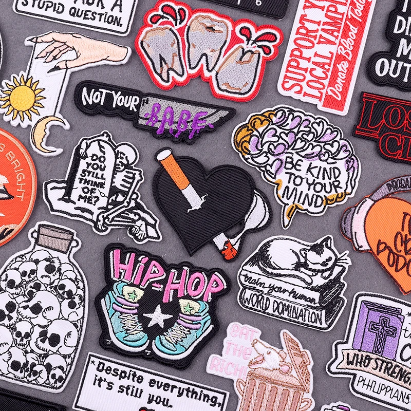 Parches bordados Punk Hip Hop para ropa, letras, lema, calavera, bordado, parches para planchar, pegatinas para ropa, insignias
