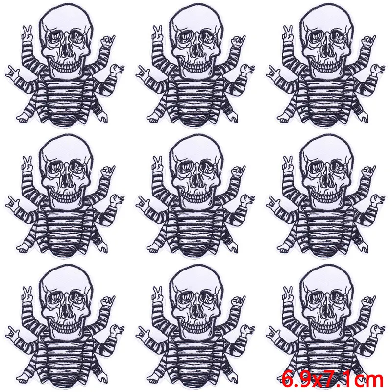10 unids/lote Hip Hop Punk parches bordados para ropa parche de calavera hierro en parches para ropa pegatinas de parche termoadhesivas